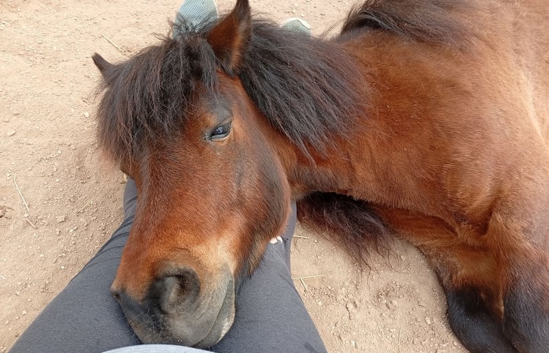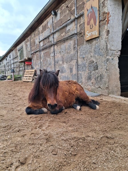 Leider müssen wir uns wieder von unserem Wallach Lucky trennen. Die Chemie stimmt nicht zwischen uns bzw vermute ich, dass wir zu viele wechselnde Reiter haben. Man kann alles mit ihm machen und er ist absolut Straßensicher. Hufpflege kein Problem und auch Zähne sind OK. Kinder können ihn putzen und auf ihm reiten, wobei das noch weiter ausgebaut werden müsste. Geführt ist gar kein Problem. Jetzt kommt das Manko. Wenn er gestresst ist oder sich nicht anders zu helfen weiß dann zwickt er mal. Da wir aber viel mit Kindern arbeiten funktioniert es leider nicht. Vielleicht findet sich eine Familie die nur für ihn da ist. Schlitten und Reitplatz abgezogen hat er auch schon gemacht.