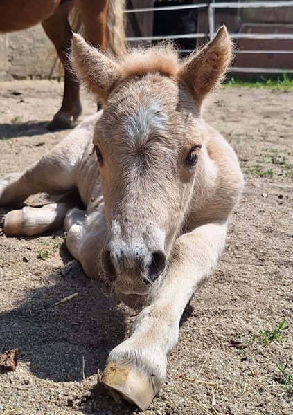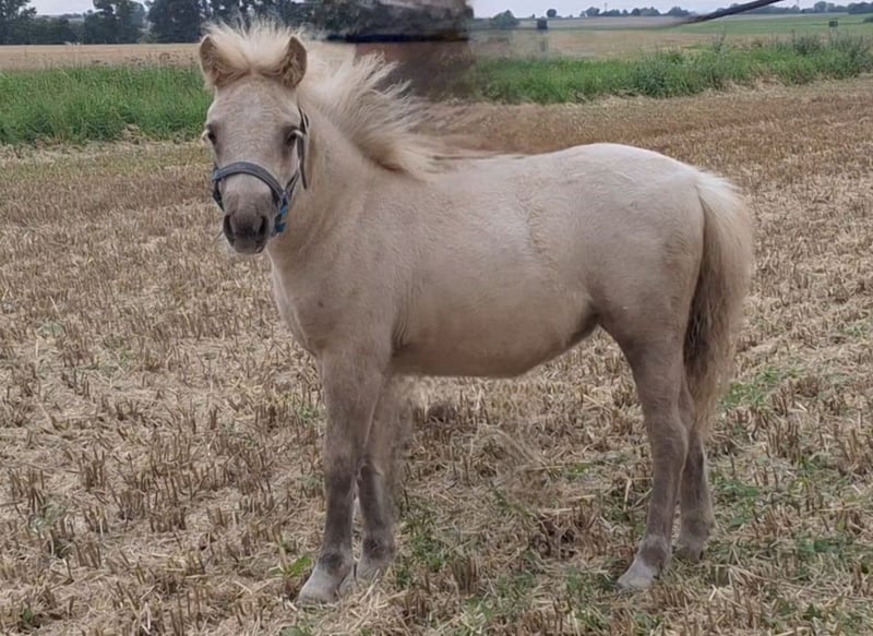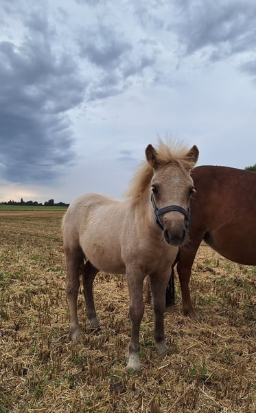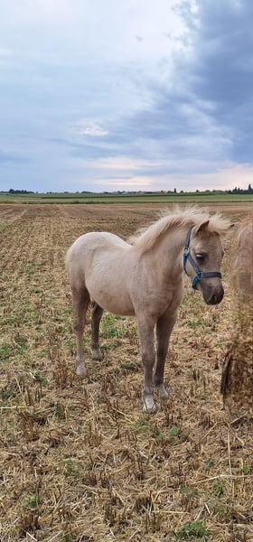 Breed: Original Shetland Pony Gender: Filly Age: 5 months Color: Palomino Height at maturity: approximately 39-41 inches (1.00–1.05 m) Pedigree: With full papers We are offering a particularly typy Shetland Pony filly in a stunning Palomino color. She is raised naturally in a herd and displays a fearless, balanced, and friendly temperament. Ideally, she would stay with her half-sister (see other listing). Both are likely to make a wonderful driving pair in the future. Only placed in the very best home. ✅ Training/Handling: - Has only been in a herd environment - Halter-trained - Gently gives her hooves - Curious and friendly ✅ Especially suitable for: - Driving ✔ - Breeding ✔ - Children/leisure riding ✔ - Future riding or lead rein pony work The foal is healthy, correctly conformed, and shows very good movement. Regularly dewormed, with hoof care provided.