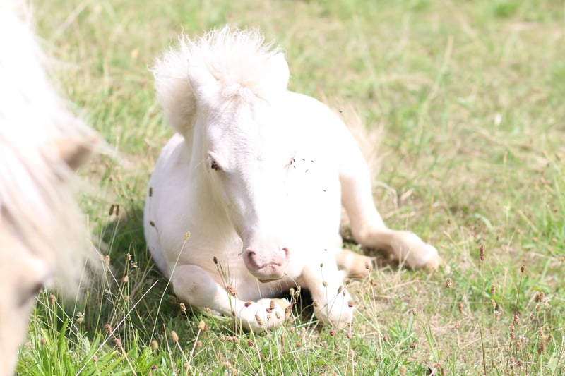 Cremello Stute Shetland Pony Shetty blaue Augen blue eyes weiß