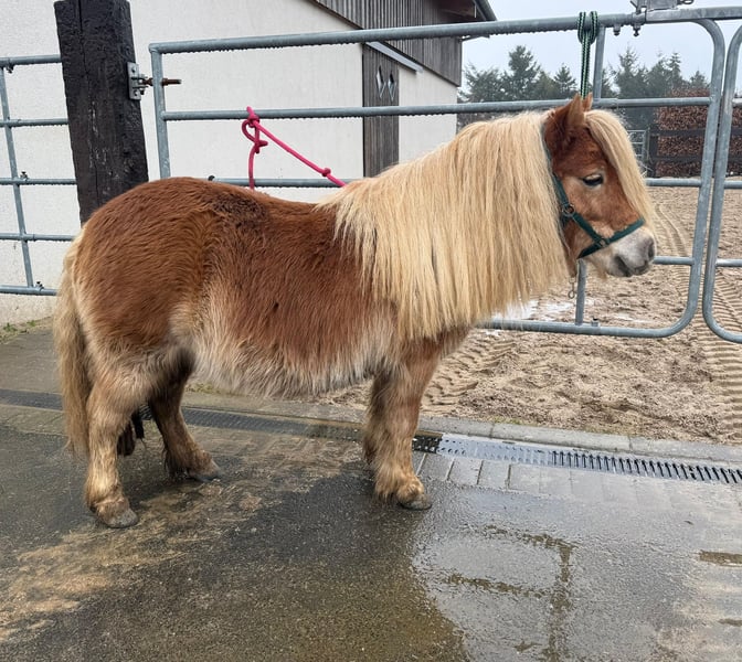 Zum Verkauf steht eine im Mai 5 Jahre alte, etwas über 1m große Shetty Stute mit voller guter Abstammung. Sie ist sehr brav im Umgang. Geritten ist sie aufgrund von fehlendem Reiter noch nicht, geht aber brav mit Sattel. Sie lässt sich gut verladen, steht brav angebunden und ist insgesamt sehr umgänglich. Sie ist auch verträglich in der Gruppe und kennt Offenstallhaltung. Die Box ist aber auch kein Problem für sie. Es steht noch weiter Shettys, Wallach, Hengst usw. zum Verkauf. Krankheiten oder Allergien sind nicht bekannt. Eine AKU darf gerne gemacht werden. Gerne anrufen oder eine Nachricht senden 0157 36803742 Alle Angaben ohne Gewähr, Preisänderungen vorbehalten, Transport möglich, Onlinekauf möglich