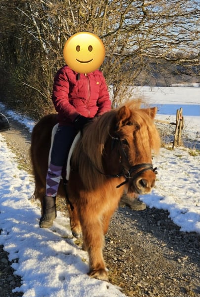 Schöne Shetty Stute, 8 jährig, Stm 1,08 cm, Fuchs abzugeben Habe sie vor ca 2 Jahren als Beisteller für meinen Wallach gekauft. Stella wurde von erfahrenen Kindern im Gelände geritten, wo sie sich sehr brav zeigte. Sie hört beim longieren auf Kommando. Sie ist absolut verkehrssicher, kennt Traktoren und zeigt sich beim Hufschmied sehr anständig. Suche für Stella ein schönes Zuhause mit ganztägigem Koppelgang oder Offenstall, wo sie mehr Aufmerksamkeit und Förderung bekommt. Sie liebt es geputzt zu werden, jedoch während ihrer Rosse im Umgang etwas zickig. Von daher nicht für Anfänger geeignet! Sie wurde regelmäßig geimpft und entwurmt Equidenpass vorhanden Platz vor Preis! Mehr Infos gerne auf Anfrage