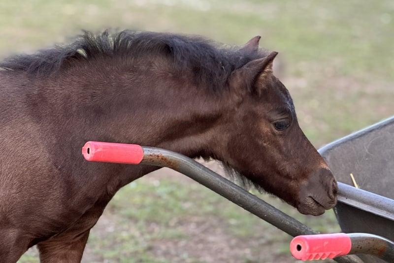 Dieses tolle Stutfohlen mit Papieren, sucht ein 5 * Zuhause. Sie ist einfach ein Hund im Ponykörper… einfach schmusig und liebevoll. Sie liebt Kinder und ist für jeden Spaß zu haben. Denke mal sie würde später ein tolles Kutschpony werden. Leider hat sie einen minimalen Unterbiss und ist daher nicht zur Zucht geeignet. Es stört sie aber keineswegs und laut Tierarzt könnte es sich auch noch verwachsen. Ansonsten ist sie ein kerngesundes Fohlen. Ihrem tollen Wesen tut es keinen Abbruch… sie ist einfach ein klasse Fohlen. Sie wird ein Endmaß von ca 105-106 cm bekommen und steht eher im kräftigen Typ. Sie kennt alles was ein Fohlen kennen muss, ist schmiede- verladefromm, kennt Hunde, ist stromzaunsicher, geht allein spazieren, sie wird regelmäßig entwurmt und berundet, bekommt gutes Aufzuchtsfutter. Darum fällt es mir bei ihr auch nicht einfach sie weg zu geben. Die kleine Dame dürfte sofort ausziehen. Ich wünsche mir für sie eine Familie die sie liebt wie sie ist. Sollten Sie Interesse haben, die kleine Maus kennen zu lernen, melden Sie sich gerne.