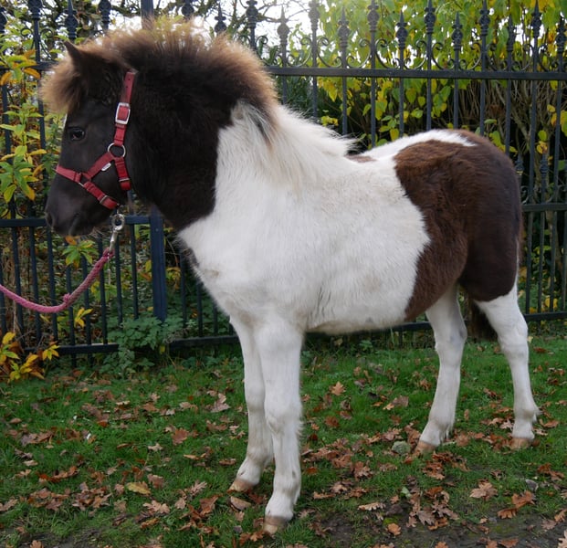 Shetland Ponies are small but sturdy, with a thick double coat that helps protect them from the harsh weather conditions of their native Shetland Islands. They have short, sturdy legs and a broad chest, with a short, compact body. Shetland Ponies come in a variety of colors, including black, chestnut, bay, and gray, and can have white markings on their faces and legs.