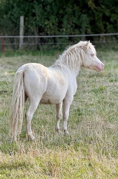 Suche für meinen kleinen Vajavo ein tolles neues Zuhause. Vajavo ist 2024 geboren und wird ein Endmaß von ca 102 cm bekommen. Er bekam als Fohlen die Fohlenprämie. Sein Vater ist Meerhusens Valentino, seine Mutter stammt ab von Whiteboy. Er hat eine tolle Farbe, Perlino, mischerbig getestet. Vajavo wächst hier mit anderen Junghengsten im Offenstall und auf der Weide auf. Kennt alles was ein Jungpferd kennen muss zB Trecker, Hunde, Kinder . Er ist stromzaunsicher, verladefrom , wird regelmäßig entwurmt und ausgeschnitten. Vajavo beißt und schlägt nicht, da er aber noch sehr jung ist, gebe ich ihn nicht speziell als Kinderpony ab. Ein toller Typ, kuschelt gerne und macht einfach nur Freude. Weitere Infos ansonsten gerne per Anruf.