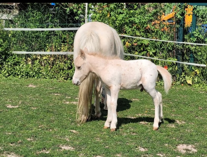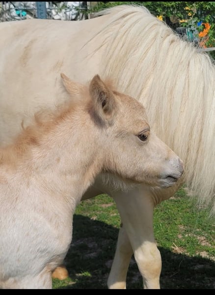 Monte Carlo Dt. Partbred Shetlandpony (unter 87cm) volle Papiere geb. 14.06.2025 Dunalino Tigerschecke EM geschätzt ca. 80cm regelm. entwurmt Hufschmied vorgestellt Da wir den Vollbruder in Aufzucht haben, zur Körvorbereitung in 2027, würden wir uns von unserem kleinen Sonderfarben Paket trennen. Monte Carlo ist ein überaus sehr schickes korrektes Hengstfohlen/Absetzer. Mutter STb1 eingetragen Cremello orginal Stute. Vater HB1 gekörter Dt. Partbred Shetlandpony Hengst Graufalbtigerschecke. Als Dunalino Tiger (Fuchsisabellfalb Tigerschecke) eine absolutes Highlight. Der kleine kennt bereits Hänger fahren, war bereits beim Schmied. Ist regelmäßig entwurmt, bekommt bestes Aufzuchtmineral. Er lebt im Offenstall Weidehaltung. Augewachsen in einer großen gemischten Ponygruppe verschiedenen Alters mit weiteren Fohlen. Er ist E- zaunsicher und ist halfterführig. Weitere Bilder und Video sind vorhanden. Anschauen nach Terminabsprache.