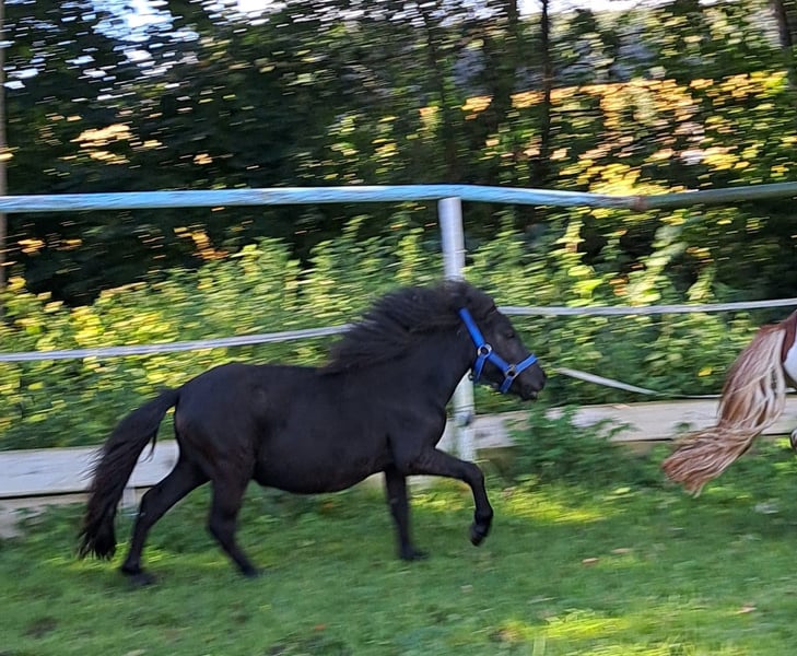 Sehen Sie es positiv, sich ein junges Pony zu kaufen. Sie haben noch etwas Zeit, dass es sich einlebt und bald kann die Ausbildung zum Reit- oder Kutschpony starten. Merlin ist ein sehr hübscher Ponyhengst mit seiner beidseitigen Mähne. Er ist ruhig wie seine Mutter, die ein ausgesprochen braves Kinderpony ist. Mit seinen zwei Jahren ist er den Umgang mit Kindern gewohnt, er lässt sich brav von ihnen führen, anbinden und putzen. Bereits im nächsten Jahr kann er zugeritten werden. Er hat auch die guten Gänge der Mutter geerbt, die eine Kronstute ist. (letzten 2 Bilder) An ihrer Seite hat er sich zu einem jungen unerschrockenem Pferdchen entwickelt. Wir machen bereits Spaziergänge im Gelände. Endmaß vermutlich 100 - 108 cm Mit dieser Größe können Kinder relativ lange damit reiten. Auch eingespannt, wird er ein gutes Bild abgeben. So wird er dem neuen Besitzer viel Freude bereiten.