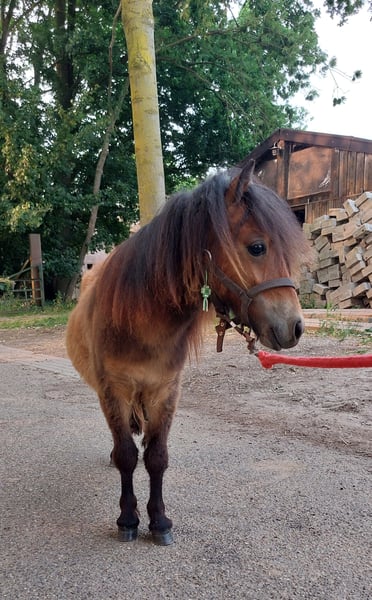 Tally is a curious and friendly Shetlander. He has a passport and chip and is registered with the Shetlander studbook. He already walks along with a halter. He also allows you to pick up his feet and groom him. The girls from the stable (10 years old) walk him around. If you would like more information, you can call or message 0031-6 19626363.