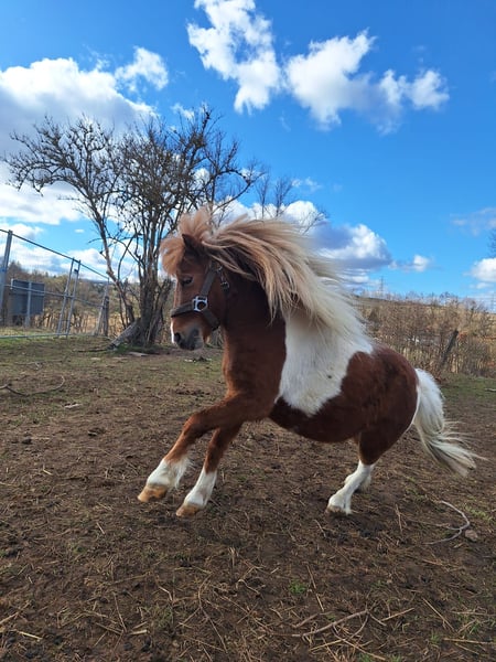 Vierjähriger Scheckenpony-Hengst (wird im Mai 4 Jahre alt) in der attraktiven Farbe Braunschecke sucht ein neues Zuhause. Er hat ein Stockmaß von ca. 88 cm und kennt bereits das Fohlen-ABC. Er ist brav im Umgang und wäre sicherlich auch für eine Familie mit Kindern gut geeignet. Auf Wunsch kann er noch gelegt (kastriert) werden – in diesem Fall beträgt der Kaufpreis 800 €. Bei Interesse oder Fragen gerne melden!