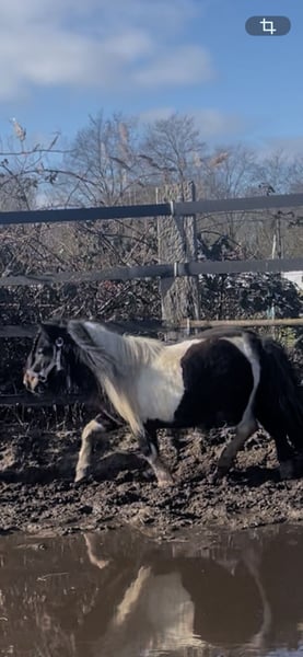 Sweet 4-year-old Shetland stallion Born on May 8, 2021 Bingo has his stallion traits (wanting to show off his teeth everywhere and getting excited when a mare passes by), but he is not a mean pony. He is very human-oriented and enjoys working. He is fearless and accepted the saddle immediately, despite never being ridden before. He has limited vision in his right eye and a poor left hind leg (contact me for videos). The lameness will likely improve with more exercise. He also needs to see the farrier. Feel free to ask any questions!