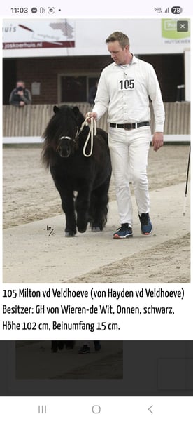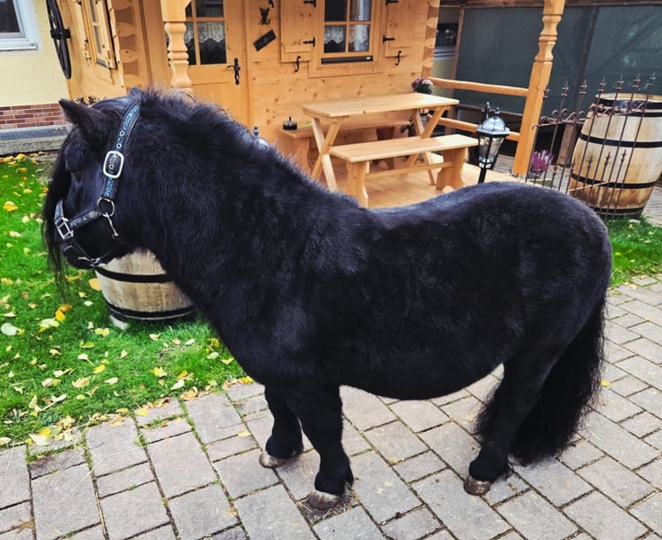 Dreamy Stallion for Sale Milo is a 7-year-old black stallion, an exceptional horse who has been with me for over a year. A TRUE MIRACLE MARE!!! He hails from the Netherlands, where he was used for breeding. With an excellent pedigree and high gait scores, he was licensed there. Since joining me, he has not been used for breeding but has been trained as a show pony. He quickly masters the complete circus program and loves free work. He stands at 102 cm (approximately 10.1 hh) and is a strong, well-built stallion with a beautiful head, a lovely neck, and good conformation. He is a real cuddle bug ☺️ Due to personal reasons, I need to part with him, and I am looking for an owner experienced with stallions who can give him a loving home where he can continue to be supported and where he has companions to play with. **Please note: he is not a children's pony and is still a stallion!** He has not yet been backed or broken in. Feel free to contact me for more questions or videos. The pony is located in the district of 84367 in Lower Bavaria.
