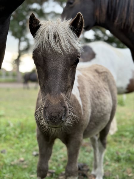 For sale is a charming Shetland pony foal: Name: Orlando Date of Birth: 09.05.2025 Sire: Dajas Otto Dam's Sire: Gedsagergards Lexus Gender: Colt Color: Spotted Expected Height: approx. 1 m Orlando is a typy, people-oriented little colt with a balanced temperament and great lineage. He is growing up in an intact herd, knows the basics of foal education, and has so far shown himself to be curious, lively, and eager to learn. He will be registered with the Weser-Ems Horse Studbook. ✔️ Regularly dewormed ✔️ Used to the farrier ✔️ Species-appropriate upbringing in a loving environment Available from October 2025 to nurturing and loving hands. Best regards, Gestüt Bretz