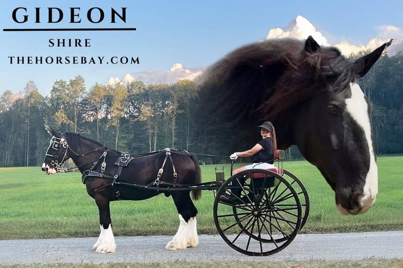 OPEN BIDDING ON THEHORSEBAY,COM. SALE ENDS ON 05/20 More information is available on the website, including an UTD vet inspection, Coggins, video, images, and the owner's contact information to ask questions, request information, or make arrangements to come to visit. Gideon … a name you never forget … He is the heart horse of all who meet him. I’ve been fortunate to own him … everywhere we have gone people are in awe at his gorgeous presence in looks and personality. there is no other in the USA like him … his lines are of Grand champions from overseas … and here is Gideon … everything he’s done has been nothing but the best … grand Champion in every show he’s been a part of as well as driving …. He just knows when he sees that arena and his feet touch that dirt he becomes everything his grand sires and dams were before him … ( brings tears to my eyes even as I write this ) there’s no other like him … ( sure there are shires out there … however try to find one like him and you will see he is the last one standing … his girth has never been accurate by the vet as no tape fits him…. His coat never bleaches out as it’s jet-black onyx with mink like properties being so smooth I’ve not touched anything like it … his mane is as long if not longer than a Gypsy’s … yet he’s full shire …. His neck circumference is like I’ve not seen / but looks incredible in that driving collar … he literally can’t be replicated …. And his personality is so rare as he does all of what you ask of him … in any competition he’s going to win … he knows instinctually… genetically he’s got a gift physically in his physique and in his demeanor … he goes anywhere and he stands out he’s magnificent… he loves people he loves the limelight … Gideon … as like his name he is the mythical creature you read about in books that black beauty who roams the ocean coasts its Gideon … once you have seen him in person you never forget Gideon. This creature doesn’t come along hardly at all … I’ve worked with horses for years 25 at least and I won’t ever see another like this … as I get older there is just so much of me to spread thin. I’ve done it all with Gideon … I pass this Olympiad touch on and now start working on several others. He Is the heart horse and once you are with him and see this you will know exactly what I’m saying. He will be the only one in the barn of this magnitude he will be the only one at that show he will be the most magnificent in that trail riding group the one who owns him will only know this when you meet him (there is no other like Gideon). 17.2H of pure majestic draft that when he runs Fabio even bows down. This is what dreams are made of. Gideon is 10 years young that when you take him out after a long winter he still knows his job. He is the perfect gentleman that takes children and new riders and gives them courage as he is just so delicate as to take care of them … Gideon has no problems to get up When asked … so receptive to the cues … he knows his job and there is no other that does it as well as him … there is a lot to be said about AMAZING BREEDING… he exudes class and intelligence beyond what any horse can. I know Gideon very well. I’ve exposed him to all stimulus… as you can see in all that he does he’s been there done that. There is nothing that Gideon can’t do. We have been on several front covers on newspapers we have been on the news, YouTube, professional photographers at the beach have taken pictures of us randomly wherever we go at one show an artist painted his picture. I was always the star️ with him whenever we went. All eyes were always on us … I owned the best of the best … I felt like the celebrity everywhere I went. He will take care of you and your family. His kind heart loves all who meet him. And after all of this … I pass the torch … You will only know … once you meet him and run your hands along his smooth satin body and through his thick ever flowing hair .. you then can only comprehend what I’m saying …. Gideon the magnificent