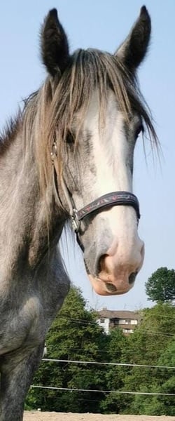Hartelijk dank voor uw interesse in onze Shire Horse ruin Göthe. Shire Horse ruin Göthe is geboren in maart 2022 en is een nieuwsgierige, knuffelige en bedachtzame jonge man. Hij komt uit onze eigen fokkerij en is vanaf het allereerste moment in onze zorg. Al als veulen had Göthe een bijzondere manier om in de schijnwerpers te staan. Bij het bloedafnemen voor de SNAP-test liet hij zich theatrraal op de grond zakken - alsof de wereld ten onder ging. Deze dramatische act deed ons meteen denken aan een groot theaterstuk - en zo was zijn naam geboren: Göthe. Vanwege zijn huidige ontwikkeling belooft Göthe een ontspannen en betrouwbare vertegenwoordiger van het Shire Horse ras te worden. Bovendien valt hij op door zijn schattige verschijning. We kunnen ons Göthe daarom ook heel goed voorstellen als toekomstig therapiedier. Hij houdt ervan om gekriebeld en verzorgd te worden, is blij met elke aai en zoekt actief de nabijheid van mensen. Wie op zoek is naar een ontspannen, rustig paard met veel hart en een diep vertrouwen in mensen, zal in Göthe een geweldige partner vinden. Hij is halstergewoon en kent alle "standaardactiviteiten" van een jong paard (verzorgingsplaats, hoefverzorging, poetsen, enz.). Ook hebben we al de eerste "trainingsaanhanger ritten" met hem gemaakt - hij stapt als een wereldkampioen in de aanhanger en reist ook prima alleen mee. Ook bij de hoefverzorging is hij lief en eenvoudig. Göthe is samen met zijn soortgenoten opgegroeid in een gemengde kudde op onze uitgestrekte weidevelden, wat naar onze mening bijzonder belangrijk is voor de gezondheid en het evenwicht van onze paarden. Nu leeft hij in een gemengde kudde (open stal). We wensen hem in ieder geval een nieuw thuis met veel paardenvrienden. Natuurlijk is Göthe gechipt, gevaccineerd en wordt hij regelmatig ontwormd. Wie op zoek is naar een knuffelig Shire Horse met een zacht en mensgericht karakter, dat hij liefdevol als partner in zijn leven wil begeleiden, kan zich heel graag bij ons melden. Onze dieren worden alleen in de beste handen en in een leeftijdsadequaat thuis geplaatst, daarom is het voor ons belangrijk om voldoende tijd te nemen voor geïnteresseerden. Ook is het voor ons belangrijk dat het paard mee beslist - want ook voor onze dieren moet de chemie kloppen. Göthe woont in de buurt van Bad Füssing - het exacte adres sturen we graag toe bij het maken van een afspraak. Daarnaast bieden we vanaf de herfst weer begeleide ritten en wandelingen met onze zachte reuzen in prachtige natuur aan. Ook minder ervaren ruiters zijn van harte welkom, in dat geval wordt het paard vanaf de grond geleid. Cadeaubonnen hiervoor zijn ook bij ons verkrijgbaar en hebben al menig mooie (verjaardags)verrassing bezorgd. Verder zijn er ook graag indrukken van onze paarden te vinden op ons Whatsapp-kanaal. Bij interesse sturen we de link hiernaar graag toe. We kijken uit naar uw bericht.
