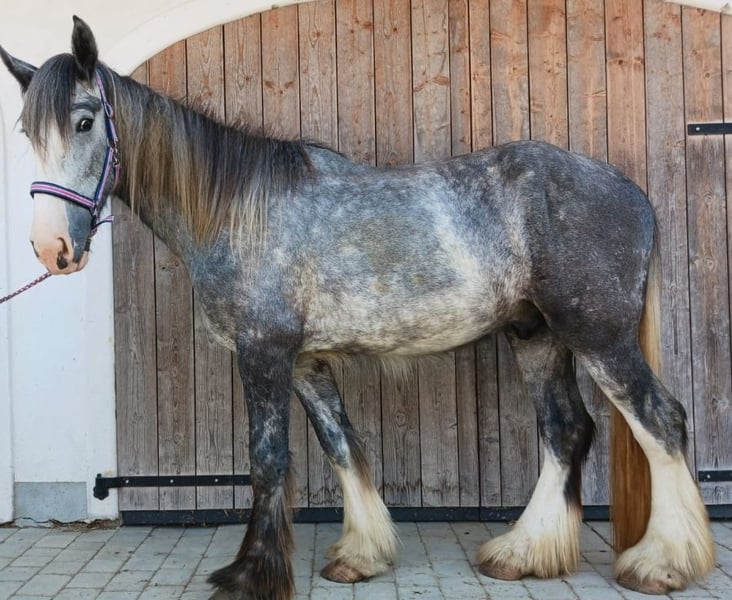 Thank you for your interest in our Shire Horse gelding Göthe. Shire Horse gelding Göthe was born in March 2022 and is a curious, affectionate, and calm young man. He comes from our own breeding and has been in our care from the very first moment. Even as a foal, Göthe had a special way of presenting himself. When blood was drawn for the SNAP test, he dramatically sank to the ground – as if the world was coming to an end. This dramatic performance reminded us of a great play – and thus his name was born: Göthe. Due to his development so far, Göthe promises to be a relaxed and reliable representative of the Shire Horse breed. He also impresses with his adorable appearance. Therefore, we can very well imagine Göthe as a future therapy horse. He loves to be groomed and petted, enjoys every stroke, and actively seeks the company of humans. Anyone looking for a relaxed, calm horse with a lot of heart and deep trust in people will find a wonderful partner in Göthe. He is halter-trained and knows all the "standard activities" of a young horse (grooming area, hoof care, grooming, etc.). We have also completed the first "trailer training" with him – he loads into the trailer like a champion and travels perfectly alone. He is also sweet and uncomplicated during hoof care. Göthe has grown up with his peers in a mixed herd on our spacious pastures, which we believe is particularly important for the health and balance of our horses. He now lives in a mixed herd environment (open stable). We wish for him to have a new home with plenty of equine companionship. Of course, Göthe is chipped, vaccinated, and regularly dewormed. If you are looking for an affectionate Shire Horse with a gentle and people-oriented character, whom you would like to lovingly accompany through life as a partner, please feel free to contact us. Our animals are only placed in the best hands and an age-appropriate home, so it is important to us to take sufficient time for interested parties. It is also important that the horse has a say in the matter – because the chemistry must also be right for our animals. Göthe lives near Bad Füssing – we will gladly provide the exact address upon scheduling a visit. We will also be offering guided rides and hikes with our gentle giants in beautiful nature again starting in autumn. Less experienced riders are welcome to join, in which case the horse will be led from the ground. Vouchers for this are also available and have already provided many wonderful (birthday) surprises. Further impressions of our horses can also be found on our WhatsApp channel. If interested, we will be happy to send you the link. We look forward to your message.