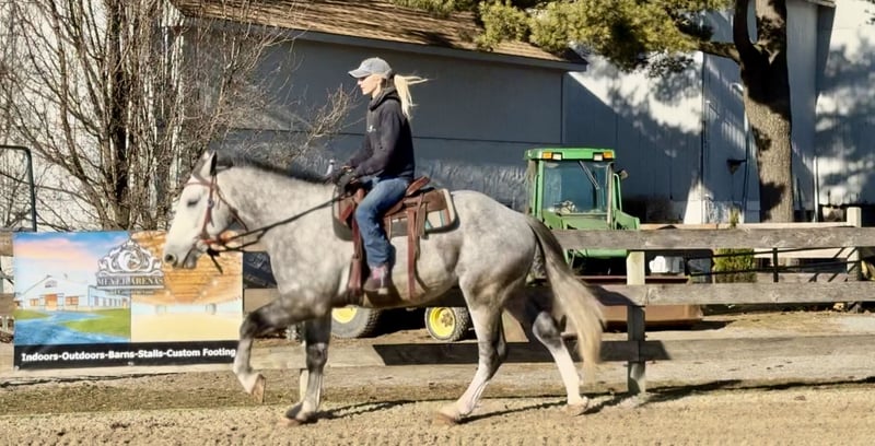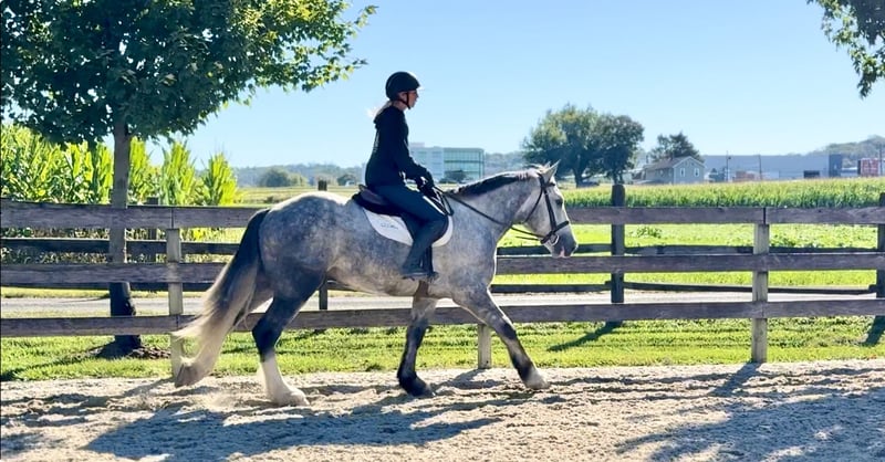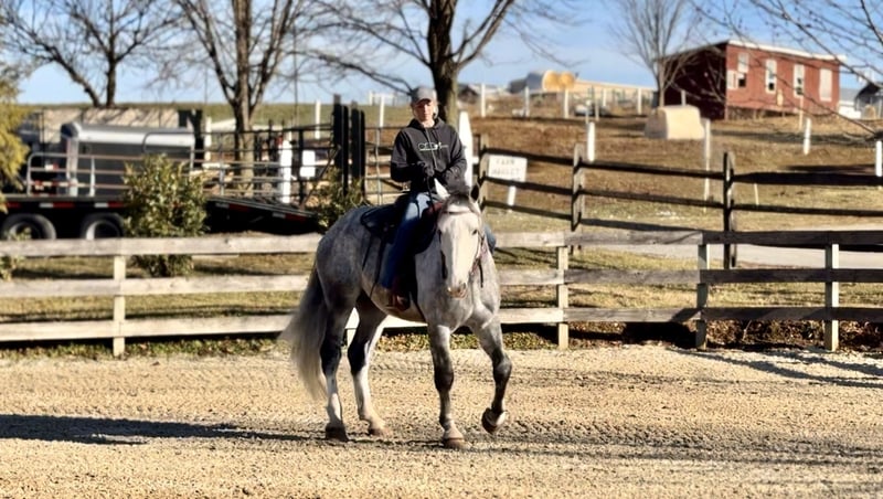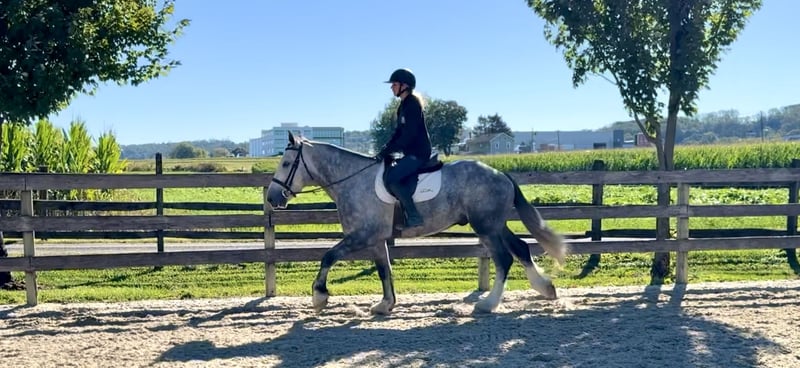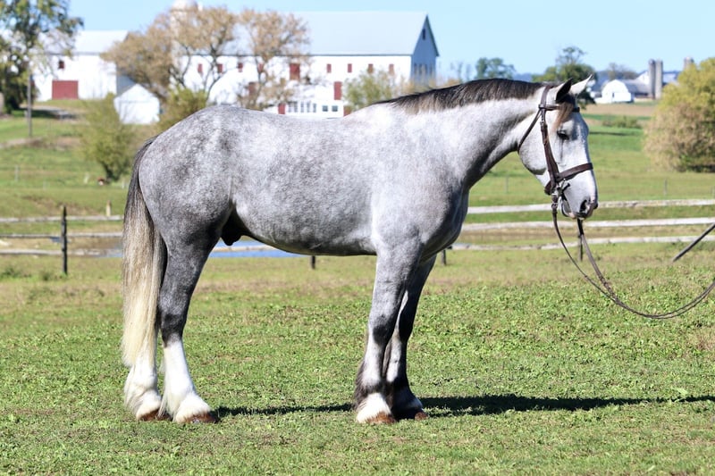 𝐉𝐀𝐍𝐔𝐀𝐑𝐘 ⭐️𝑨𝒍𝒍 𝑺𝒕𝒂𝒓 𝑳𝒊𝒏𝒆𝒖𝒑⭐️ Happening now thru MONDAY | JANUARY 26th - Available EXCLUSIVELY on HorseBid's website! For more details and to register visit: www.Horsebid.com CONSIGNOR CONTACT: CM Farms 717-875-2061 LOCATION: Gap, PA BREED: Shire/QHX REGISTERED: No REGISTERED NAME: Sailor COLOR: Grey HEIGHT: 15.3-16 AGE: 5 GENDER: Gelding Meet Sailor! This perfectly put-together guy is a 5-year-old Shire/QH cross gelding. He stands right around 15.3–16 hands high with a solid build, making him suitable to carry a variety of riders. Not only is Sailor good-looking, he has all the right qualities to match. His temperament is unbeatable! He was born quiet, is easygoing and unflappable, and he LOVES people. This special guy has absolutely stolen our hearts—it’s impossible not to love him! He’s like a big teddy bear and is enjoyable both in the barn and under saddle in every way. He rides English, Western, bareback, and he’s broke to drive! If you’ve been looking for a horse to learn on, grow with, and call your best friend—here he is. Under saddle, Sailor is one of the easiest horses we’ve ever had. He is the same horse whether he’s ridden every day or pulled out once a month. He’s the reliable kind that’s hard to come by, and once you find one, you never want to part with him! This perfect boy is well balanced and has a sensible brain—he’s wise beyond his age. His trot is even, adjustable, and easy to sit. True to his quiet personality, he tends to be more of a push ride and is not one that will run away with you. He is still responsive and will move out when asked. His canter is incredibly smooth, with both leads, easy transitions, and zero funny business. He would make a fun dressage prospect—his balance, ability to adjust himself, and pretty movement get noticed by everyone. He knows how to leg yield, side-pass, and spin! He’s the kind of horse you don’t have to worry about; he can handle mistakes and won’t hold them against you. You’ll finish every ride with a smile on Sailor boy—he’s truly special and is going to make someone very happy. Sailor keeps his head on his shoulders in every situation, which also makes him an incredible trail partner. He is brave and genuinely enjoys spending time on the trail. He’s happy to mosey along in the back and pack the husband, or he’ll lead the pack cantering through the fields. He’s been on roads, in windy woods, through water and creeks, and out in open fields—he’s seen it all and acts like a 30-year-old pack horse. Bikers, traffic, hikers, flags, dogs, wildlife—he’ll shrug and carry on doing his thing. Sailor has had plenty of saddle time both Western and English, and he looks equally good in both. He’s the type of horse you could ride with your eyes closed and he’ll take care of the rest. We’re pretty confident that any idiot who can climb on can ride him. He’s solid, sweet, and reliable. It’s hard to put into words just how special this boy is! In the barn, Sailor will greet you every time with ears forward and a sweet expression. He has the softest eye, which truly shows his genuine soul. He’s a people-lover and will stand on the cross-ties all day just to be loved on. He enjoys his people, his snacks, and any attention he can get. He’ll greet you in the pasture and gets along well with everyone for turnout. He’s quiet and well-behaved in his stall, with zero vices, and is an easy keeper. He loads and unloads from the trailer like an old pro and is enjoyable and easy to have around in every aspect. Sailor is a lovely young prospect—safe, stress-free, and a good boy with his whole life ahead of him. We will definitely be sad to see this gelding go, but excited to watch all the great things he will do. Don’t miss your chance to own this special boy!