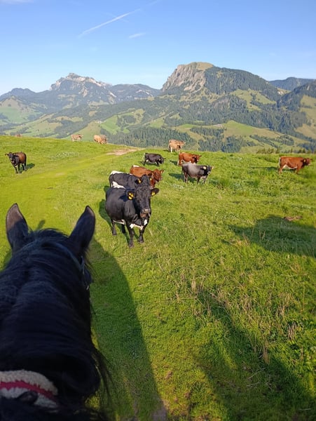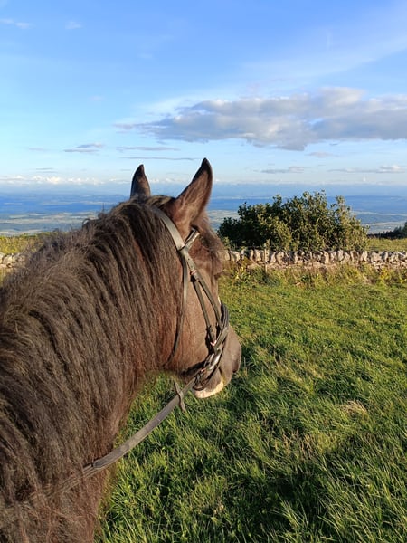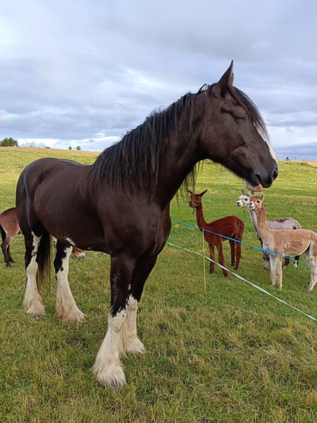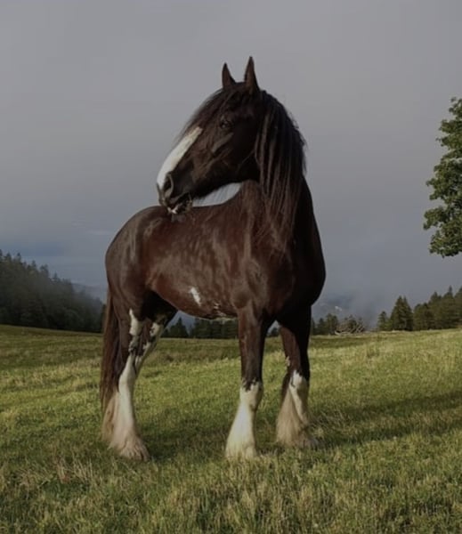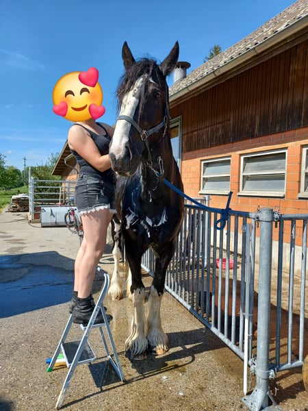 Loving Gem Easygoing, affectionate, and with a heart of gold: If all the conditions are right, we would be willing to part with our beloved Shire mare. Born June 29, 2015 Sire: Penrhos Brave Heart Dam: Senlim Heather May Height: 16.1 hh She loves to explore the terrain, crossing streams and navigating rocky paths. - In perfect health - Easy to load - Well-shod (four shoes) - No hoof issues - Absolutely child-friendly Children can also ride her in a group setting. - Responds excellently to voice commands She shows great motivation during groundwork, trail riding, and longeing. In the arena, despite solid basics, she sometimes lacks a bit of enthusiasm. For this reason, we are looking for the person who is the perfect match for her. Her excellent pedigree also makes her an interesting prospect for breeding.