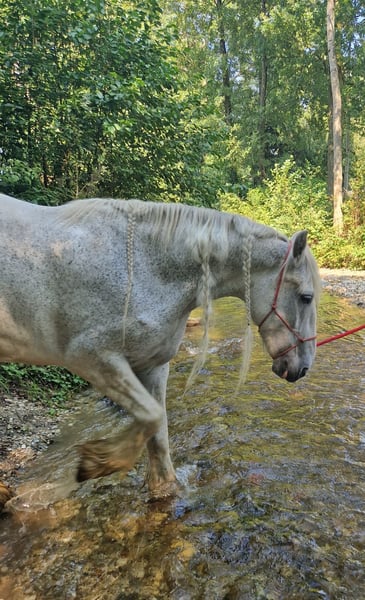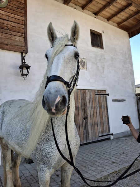 Beautiful Shire Mare for Sale – Perfect for Leisure Riding! This stunning grey mare was born in 2011 and impresses with her impressive height of approximately 180 cm. She is a typical representative of her breed—calm, friendly, and well-mannered—making her ideal for leisure and hobby riders. She is healthy, well-groomed, and accustomed to human interaction. Her calm demeanor makes her a reliable companion for extended rides and relaxed hours in the riding arena. Please feel free to contact me for further information or if you are interested. A viewing can be arranged by appointment.
