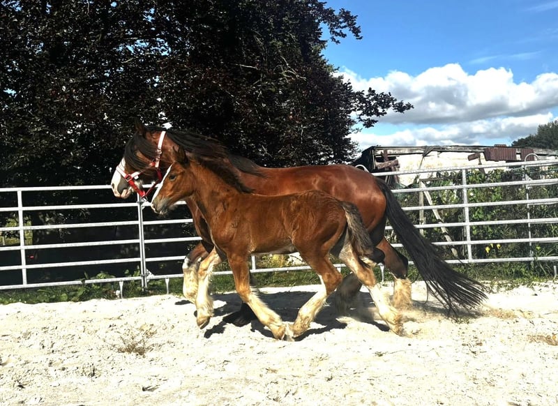 Unsere Tuilteans Briana ist nun alt genug und bereit, in ein neues Zuhause zu ziehen. Briana ist am 10.6.25 geboren, von Middle Meadow Morgan, aus Oakridge New Dawn. sie wird vermutlich eine Größe von knapp 1,80m erreichen, mit viel Knochen und Haar. Sie ist ein aufgewecktes, neugieriges Fohlen, als Tochter der Herdenchefin mit eigenem Kopf. Briana wächst im Herdenverband auf, kennt Offenstall und Box. Sie bekommt volles Zuchtpapier der SHS, welche derzeit noch in Arbeit sind. Mehr Infos gern auf Anfrage.