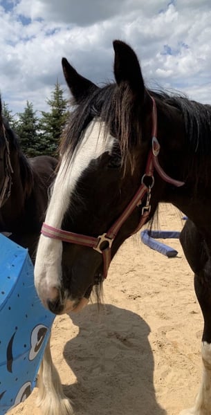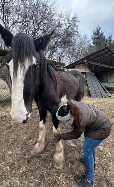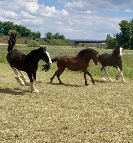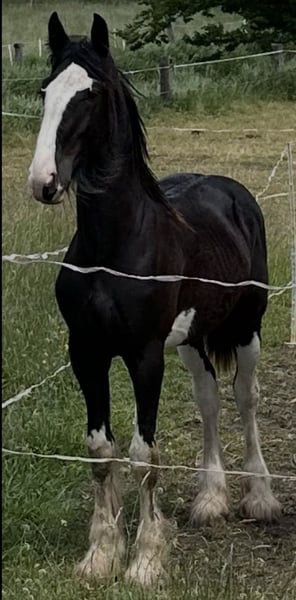 Shire Horse Jungstute, geb. 2024 – auffällige Zeichnung, neugierig & menschenbezogen Schweren Herzens- Aufgrund veränderter Umstände suche ich für diese besondere junge Shire Horse Stute ein passendes Zuhause. Kein Notverkauf. Sie ist eine sehr neugierige, aufgeschlossene und lernwillige Stute mit einem eher „extrovertierten“ Charakter. Im Vergleich zu ihrer Schwester zeigt sie sich aktiver, ist auch verspielt und interessiert an ihrer Umgebung, bleibt dabei aber stets händelbar und klar im Kopf. Im Umgang ist sie sehr verschmust, menschenbezogen und genießt Aufmerksamkeit. Putzen und Nähe zum Menschen mag sie besonders. Für ihr Alter bringt sie bereits viel mit: – kennt Bodenarbeit und erste Gelassenheitsübungen – lässt sich problemlos führen und anbinden – alleine stehen sowie spazieren gehen ist kein Problem – Tierarzt und Hufschmied sind problemlos (manchmal etwas engagiert) – kennt Hunde, Kinder, andere Tiere, Fahrzeuge, Wasser, Plane, Spray, Fliegenhaube, Decke etc. Sie wächst im Herdenverband auf, kennt Offenstall sowie Box mit Paddock und ist sozial verträglich. In neuen Situationen zeigt sie sich neugierig und aufmerksam, schaut sich Dinge genau an und verarbeitet sie gut. Farbe: Rappe mit vier weißen Abzeichen an den Beinen und auffälliger, typvoller Kopfzeichnung Beide Eltern sind großrahmig und liegen bei ca. 1,90 m Stockmaß. Aktuell ca. 1,65–1,70 m (im Wachstum). Für ihr Alter sehr gut händelbar – aufgrund des jungen Alters jedoch kein reines Anfängerpferd. Freizeit-, Aufzucht-, Reit- oder Fahrpferd. Barhuf, regelmäßig geimpft und entwurmt. Pass vorhanden. Aufgrund der Größe der Eltern (ca. 1,90 m) ist von entsprechendem Endmaß auszugehen. Rappe mit vier weißen Abzeichen an den Beinen und schönem Behang Transport ist gegen Aufpreis möglich. Zubehör kann ebenfalls gegen Aufpreis übernommen werden. Gravel Pit Jane - Rappe Vater: Gravel Pit Lord Ashby - Rappe Mutter: Brickell Edwina - Rappe