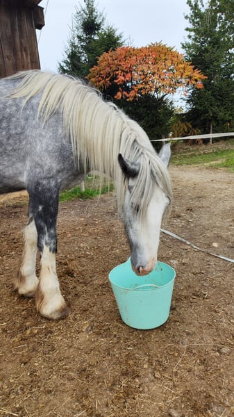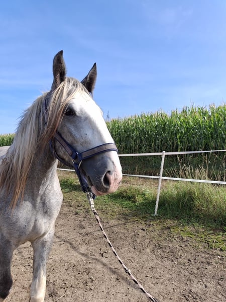 Beautiful Shire Horse Mare for Sale Up for sale is an impressive Shire Horse mare, born in 2022. This elegant grey mare stands out with her remarkable height of 179 cm and her calm, friendly demeanor. She is ideally suited for leisure riding and impresses with her balanced personality and pleasant temperament. The mare is healthy, regularly vaccinated, and well cared for. She is perfect for riders seeking a reliable and majestic horse for recreational riding. If you are interested or have any questions, I am happy to assist. Feel free to arrange a viewing and a trial ride.