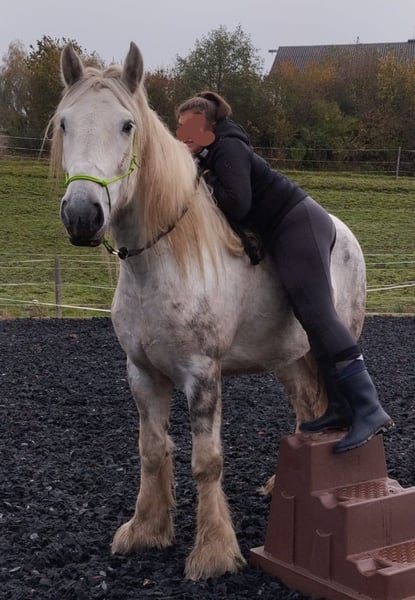 Nous vous remercions de l’intérêt que vous portez à notre jument Shire, Twinkle. Née en 2019, Twinkle mesure actuellement environ 1,75 m au garrot, étant encore en croissance. Elle possède toute la paperasserie officielle de la British Shire Horse Society. Elle provient de notre élevage et a grandi dès ses premiers mois avec d’autres poulains, puis dans un groupe mixte. Ses deux parents se distinguent par leur caractère équilibré et amical. Twinkle a été élevée en troupeau et connaît aussi bien la vie en pâture 24/7 que le box. Actuellement, elle vit en paddock, mais elle connaît également le box. Dans le groupe, elle occupe plutôt une place élevée, mais elle aime aussi beaucoup se faire caresser par ses compagnons équins. À 5 ans, nous avons commencé son travail en selle. Twinkle impressionne par sa capacité d’apprentissage rapide et sa sérénité. Lorsqu’elle ne comprend pas quelque chose, elle reste immobile plutôt que de paniquer. Elle est très proche des humains, curieuse et attentive. Nous montons tous nos chevaux à partir de l’âge de 5 ans, en douceur. Avant cela, nous privilégions le travail de base, la manipulation au sol et le développement de la tranquillité. Travailler avec Twinkle est particulièrement agréable grâce à sa motivation et son enthousiasme. Elle dispose bien sûr de toutes les vaccinations nécessaires, est régulièrement vermifugée et présentée chez le maréchal-ferrant. Elle se montre très coopérative aussi bien chez le vétérinaire que chez le maréchal-ferrant : elle donne volontiers ses sabots et accepte tout sans problème. Le transport en van ne lui pose également aucun souci. Pour toute prise de contact, une rencontre sans engagement est évidemment possible à tout moment. Nous sommes joignables principalement via WhatsApp pour plus d’informations. Nos chevaux sont confiés uniquement à des personnes responsables et dans un foyer adapté à leur âge. Il est important pour nous de prendre le temps nécessaire pour rencontrer les potentielles adoptantes. Nous attachons aussi beaucoup d’importance à ce que la relation entre le cheval et son nouveau propriétaire soit harmonieuse, car la chimie doit également fonctionner pour nos animaux. Les photos présentées incluent à la fois des clichés très récents, ainsi que des images prises lors de sa formation l’année dernière et il y a deux ans. La couleur de Twinkle a donc évolué avec le temps. Nous proposons volontiers une rencontre sans engagement, par exemple lors d’une journée ou d’un week-end dédié aux Shire, afin de faire connaissance dans un cadre calme et détendu. Twinkle vit près de Ried im Innkreis. Des hébergements avec de délicieux repas sont disponibles à proximité de notre ferme. Dans les environs, plusieurs thermes magnifiques offrent également une belle occasion de se détendre, ce qui en fait une petite escapade idéale. Même les non-cavaliers sont très bienvenus chez nous. Nous organisons aussi des randonnées guidées à cheval ou à pied avec nos gentils géants en pleine nature. Les cavaliers moins expérimentés peuvent également participer, en étant accompagnés à pied. Des bons cadeaux pour ces activités sont disponibles et ont déjà fait de belles surprises d’anniversaire. Pour plus d’images de nos chevaux, n’hésitez pas à consulter notre chaîne WhatsApp. Nous serons ravis de vous en envoyer le lien si vous souhaitez en savoir plus.
