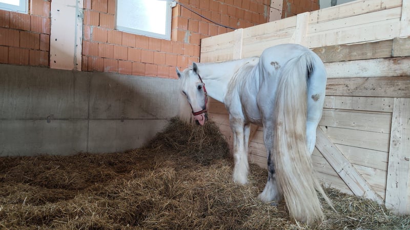Verkaufe edlen auf Lebzeit gekörten schimmel Shire Horse Hengst – ideal für Zucht, Show und Freizeit Zum Verkauf steht ein beeindruckender Shire Horse Hengst, geboren im Jahr 2016. Dieser prächtige Schimmel ist ein Traum einer jeden Prinzessin die darauf wartet, dass ihr Prinz auf ihm daher reitet. Wir haben an der Hand mit ihm gedeckt. Er ist dabei super brav. In den letzten 6 Jahren hat er uns über 40 Fohlennachkommen geschenkt. Duke hat eine ruhige, freundliche Art. Er gehört schon der neuen modernen Linie an - schmaler und trotzdem ein Riese. Mit seinen 1,94 cm gehört er zu den Großen und vererbt das auch weiter. Er ist geritten, beherrscht alle 3 Gangarten. Er macht seine Sache gut, aber weiss, dass er ein Deckhengst ist und seine Hauptaufgabe in der Zucht liegt. Momentan wird er in der Box gehalten mit täglichem Auslauf. Mit seinem Boxennachbarn, einem 17 Jahre alten schwarzen Shire Horse Hengst, krault er über das Tor an den Ohren. Bis er verkauft ist, steht er noch als Denkhengst für Shire Horse Stuten zur Verfügung gegen Deckgebühr in der Höhe von € 1100,- Bei Interesse oder für weitere Informationen stehe ich gerne zur Verfügung. Besichtigung nach Vereinbarung möglich.