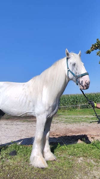 Te koop: nobele, levenslang gekeurde Grijze Shire Horse hengst – ideaal voor fokkerij, shows en recreatie Te koop staat een indrukwekkende Shire Horse hengst, geboren in 2016. Deze prachtige grijze is een droom voor elke prinses die wacht tot haar prins op hem rijdt. We hebben hem handmatig laten dekken. Hij is daarbij zeer braaf. In de afgelopen 6 jaar heeft hij ons meer dan 40 veulens geschonken. Duke heeft een rustige, vriendelijke aard. Hij behoort al tot de nieuwe, moderne lijn – slanker gebouwd, maar nog steeds een reus. Met zijn 1,94 m behoort hij tot de grote paarden en geeft dat ook door aan zijn nakomelingen. Hij is bereden en beheerst alle drie de gangen. Hij doet zijn werk goed, maar weet dat hij een dekhengst is en dat zijn voornaamste taak in de fokkerij ligt. Momenteel staat hij in de box met dagelijks uitloop. Samen met zijn boxgenoot, een 17 jaar oude zwarte Shire Horse hengst, knuffelt hij over het hek aan de oren. Totdat hij verkocht is, staat hij nog ter beschikking als dekhengst voor Shire Horse merries, tegen een dekgeld van € 1100. Bij interesse of voor meer informatie, neem gerust contact op. Bezichtiging mogelijk op afspraak.