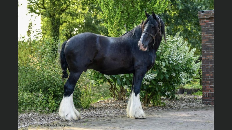 For sale is Wieswood Aragorn, born in April 2025. Not only is he a true gem in terms of character, but he is also very promising for breeding purposes. S. lineage. Estimated final height: over 190 cm. He will receive full and recognized SHS registration papers. Vaccinated and dewormed. Images 1-3: Current photos Image 4: Aragorn at 5 days old Image 5: Sire, Middle Meadow Morgan Image 6: Dam, Berrybrooks Duchess, 5 years old, over 190 cm 2024 Ostfriesland State Breeding Show, Champion Mare Class 5-year-olds Image 7: Sire’s sire, Cae Mawr Aristocrat Image 8: Dam’s dam, Middle Meadow Crystal Images 9-10: Full sister of the dam, Tide’s Mother of Dragons, 4 years old 2023 Ostfriesland State Breeding Show Champion Mare 2-year-olds Best Shire Horse bred in Germany 2023 2024 Ostfriesland State Breeding Show Champion Mare 3-year-olds Champion Mare of all classes 2024 Best Shire Horse bred in Germany 2024 2025 Federal Breeding Show Wickrath Champion Mare 4-year-olds