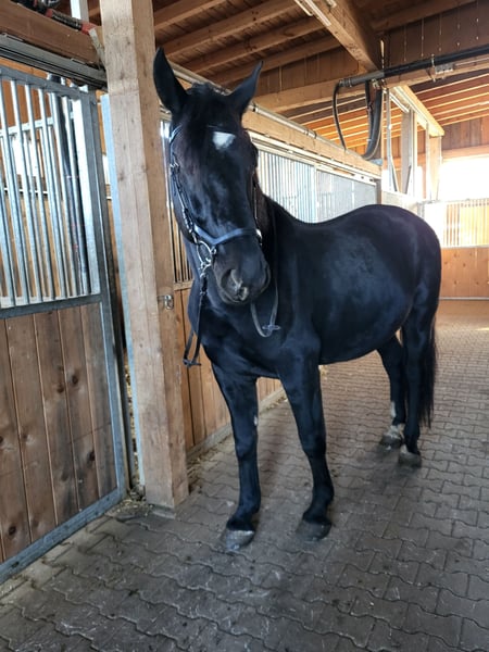 Wenn man nicht zusammenkommt, muss man auseinandergehen. Biete meinen bildhübschen Rappwallach zum Verkauf an. Ich habe ihn vor 4 Monaten aus Polen direkt vom Züchter gekauft und er ist seitdem bei mir. Apollo kennt sowohl Herdenhaltung, als auch Einzelhaltung inder Paddockbox mit Weideanschluss. Auch kennt er Sattel, Trense, Longieren... Er ist angeritten und in Polen war er auch schon vor der Kutsche. Leider ist er aufgrund seiner Aufgeregtheit und Ängstlichkeit in fremder Umgebung kein Verlasspferd und kein Anfängerpferd. Er bräuchte eine(n) sattelfeste(n) Reiter(in), der täglich viel Zeit aufbringen kann und ihn konsequent weiter ausbildet, am besten in einer Halle, wo er sich in gewohnter Umgebung einfinden kann. Er hat unheimlich viel "Go", was für seine Rasse eher untypisch ist. Ich habe ihn im Juli entwurmen lassen und er ist gegen Influenza und Tetanus geimpft. Auch hat er eine aktuelle Behandlung durch einen Dentisten und einen Osteopathen hinter sich. Er läuft auf Winterbeschlag, kennt also auch den Hufschmied. Ich beantworte nur ernstgemeinte Anfragen und wünsche mir für ihn den besten Platz der Welt und einen Freund, der gute Nerven, Zeit und ein großes Herz hat.