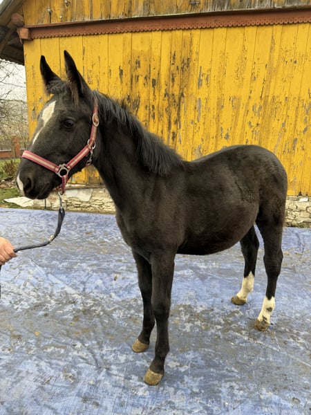 Sprzedam klaczkę (ur. Kwiecień 2025) z bardzo dobrego pochodzenia. Matka: Fallada Ojciec: Bonus Klacz zdrowa, zadbana, spokojna i chętna do współpracy. Przyzwyczajona do kontaktu z człowiekiem. Zapowiada się na naprawdę obiecującą klacz – ma ładną budowę, dobry ruch i świetny charakter. Idealna na przyszłość do jazdy lub hodowli. Możliwość obejrzenia na miejscu. Więcej informacji udzielę telefonicznie lub w wiadomości.