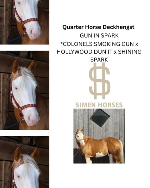 Sparky es un joven semental de mente abierta y curiosa con un excelente pedigrí. En cuanto a su carácter, el semental es realmente tranquilo e intrépido, bien educado, muy tranquilo, cariñoso y mimoso. La mega calma de Sparky, que sus ancestros también trajeron consigo, hará que su descendencia sea súper adecuada para el jinete de ocio moderno. Sparky está en entrenamiento de reining. Registrado en DQHA/ AQHA. 5 Panel N/N. Su linaje no deja nada que desear. *COLONELS SMOKING GUN x HOLLYWOOD DUN IT x SHINING SPARK*. Los tres sementales NRHA Million Dollar fueron combinados en su pedigree. La primera cría nacerá en 2024. Para más preguntas por favor contáctenos.