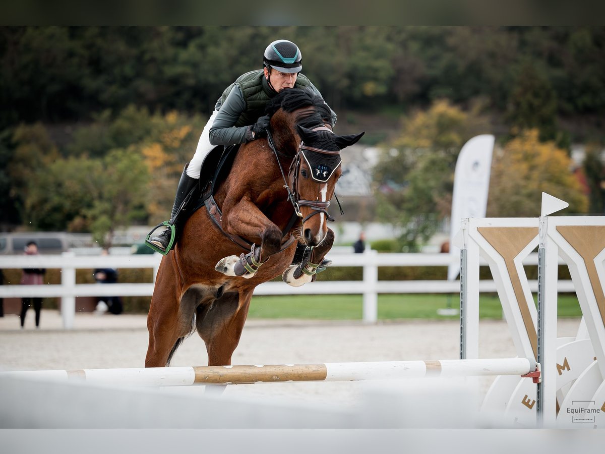 Lieber junger Springwallach zu verkaufen, mit sehr gutem, stilvollem Sprung und viel Galopp. TOP-Charakter, keine Unarten, sehr einfach im Umgang, ein sicheres Pferd. Hat Turniererfahrung bis 1,00 m, zeig sich auf Turnieren sehr mutig and unkompliziert. Mit gutem Trainer auch fur ein Kind geeignet. 168 cm Stockmass, leichtes, athletisches Pferd. Weitere Bilder, Videos und Informationen gerne per E-mail. Lovely young showjumping gelding for sale, with a very good stylish jump and huge canter. TOP character, no vices, very easy for handling and grooming, safe horse, has done competitions up to 1m, at shows very brave and easy going. With a good trainer suitable also for a kid. 168 cm high, light athletic horse. More pictures, videos and information via email.