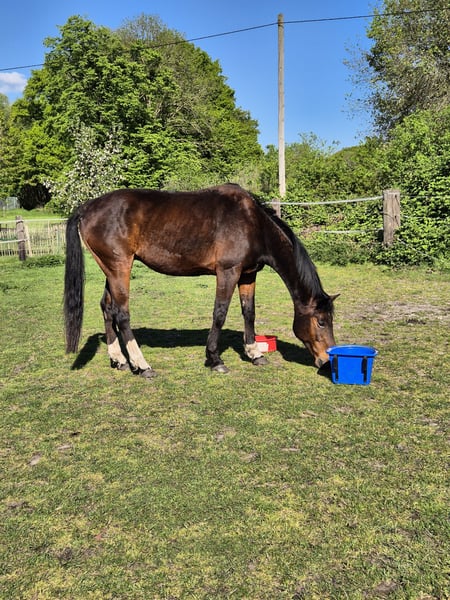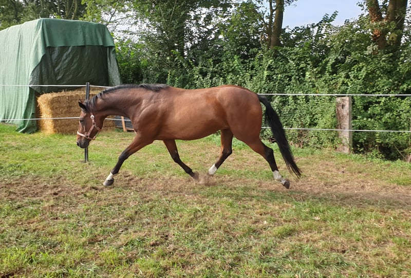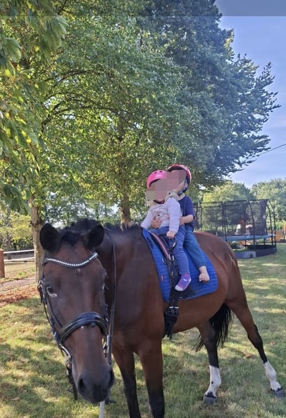 **Verkaufsanzeige: Kleines Deutsches Reitpferd** Zum Verkauf steht ein charmantes kleines Deutsches Reitpferd (Wallach, geb. 2010) in einem wunderschönen braunen Fell. Mit einem Stockmaß von ca 160 cm ist er der ideale Partner für Freizeitaktivitäten. Unser Wallach ist ein ausgeglichener und freundlicher Begleiter, der sich sowohl für erfahrene Reiter als auch für Wiedereinsteiger eignet. Er liebt es, im Gelände unterwegs zu sein und zeigt sich dabei stets brav und zuverlässig. Er kennt landwirtschaftliche Fahrzeuge aller Art, sowie Hunde und Kinder. Blitz ist ein offener Wallach der immer gefallen möchte. Er geht alleine ins Gelände. Früher wurde er öfter gesprungen, was ihm auch immer Spaß gemacht hat. Die Tunierumgebung ist ihm zwar bekannt, war aber immer sehr stressig für ihn. Er ist gut erzogen, im Umgang unkompliziert und hat einen freundlichen Charakter. Ob beim Ausreiten, in der Halle oder beim Bodenarbeit – er macht immer eine gute Figur und begeistert durch seine Lernbereitschaft. Wenn Sie auf der Suche nach einem treuen Freizeitpartner sind, der Ihnen viele schöne Stunden im Sattel bescheren wird, dann melden Sie sich gerne für weitere Informationen oder einen Besichtigungstermin. Wir freuen uns auf Ihre Nachricht!