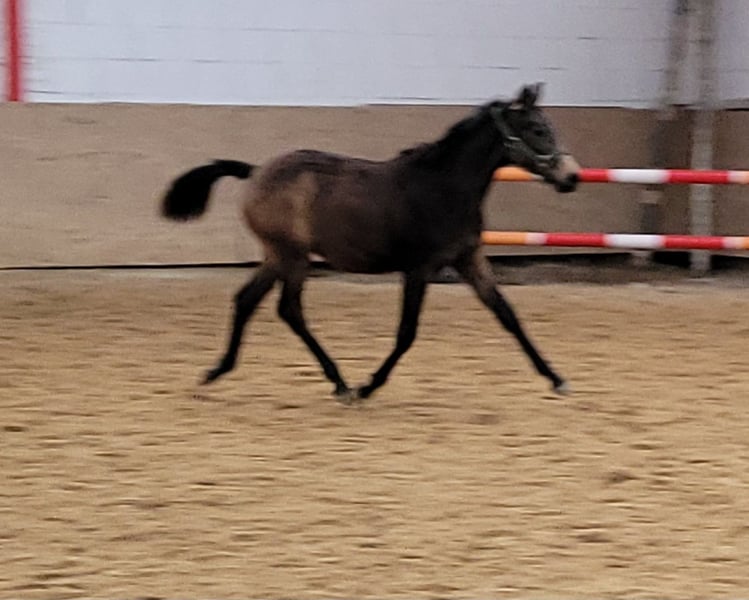 Mila wird jetzt schon 8 Monate und sucht ihren neuen Menschen. Diese hübsche Buckskin Stute besticht durch ihre harmonische Ausstrahlung, aufgeweckt neugieriges Wesen. Sie beherrscht das Fohlen ABC. Sie wurde zur Fohlenschau vorgestellt und bekam die Fohlenprämie. Sie bekommt Papiere f. Kleines deutsches Reitpferd. Endmaß ca 1,60m Momentan ca 1,36m groß Aufgrund ihrer Eltern wird Mila mal eine sehr vielfältige junge Dame werden, die in Dressur, Springen und Gelände eingesetzt werden kann. Beide Elternteile problemlos beim Anreiten, rittig, vordere Platzierungen bei Freispringwettbewerben. Mila wird regelmäßig dem Hufschmied vorgestellt, entwurmt und Tetanus erhalten. Besichtigung nach Absprache jederzeit möglich. Standort: 39164 Wanzleben-Börde Bringen des Fohlens gegen Aufpreis wäre kein Problem. Oder auch in der Aufzucht bleiben gegen Aufpreis. Ratenzahlung auch denkbar. Das Fohlen bleibt dann aber bis zur vollständigen Bezahlung bei uns aufm Hof.
