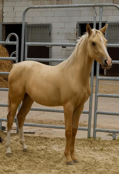 Herausragend schöne goldene Stute in kleinem Warmblutformat. SUPER Charakter‼️ Sehr dem Menschen zugewandt, cool, brav und extrem unerschrocken. Darijah ist stets kooperativ, will gefallen und hat ein äußerst liebevolles ruhiges Wesen. Sie fällt durch ihre entspannte und ausgeglichene Art auf und wird sicher ein 100 % Verlasspferd werden. Video nicht vorhanden. Diese Stute muss man kennen und lieben lernen❣️ Kommen Sie gerne auf einen Besuch vorbei.
