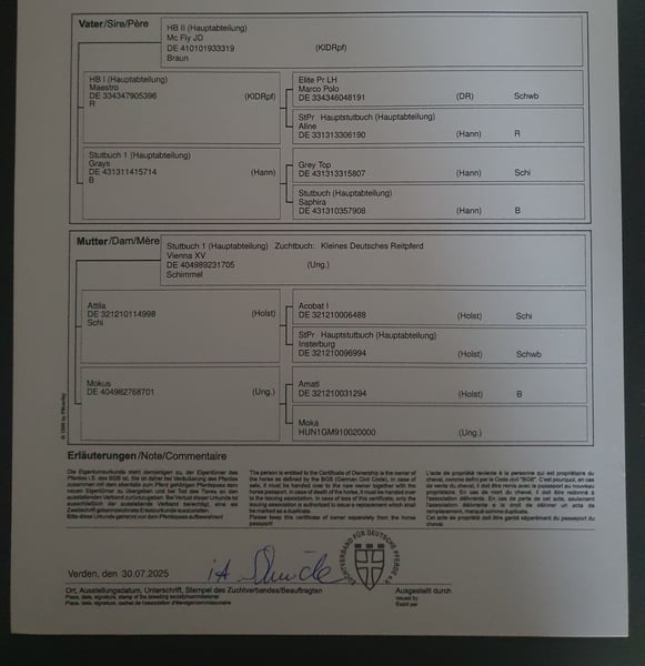 Valletta V: Mc Fly VV: Maestro VMV: Grey Top MV: Attila MVV: Acobat I MMV: Amati Beide Eltern überzeugen durch Rittigkeit und einen klaren Kopf. Diese kernige Stute bringt alles für den Leistungssport mit. Sie ist reaktionsschnell, wendig, kernig und vor allem mutig. Sie lässt sich überall anfassen, kann Hufe geben, kennt Halfter, Fliegenmaske, Hunde, Trecker und Anhänger fahren. Wir leisten gerne Hilfe bei der Aufzucht und der Ausbildung.