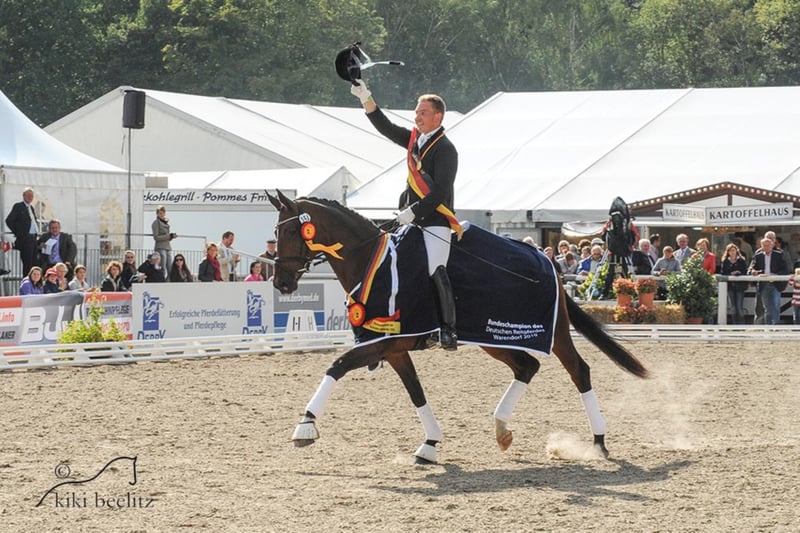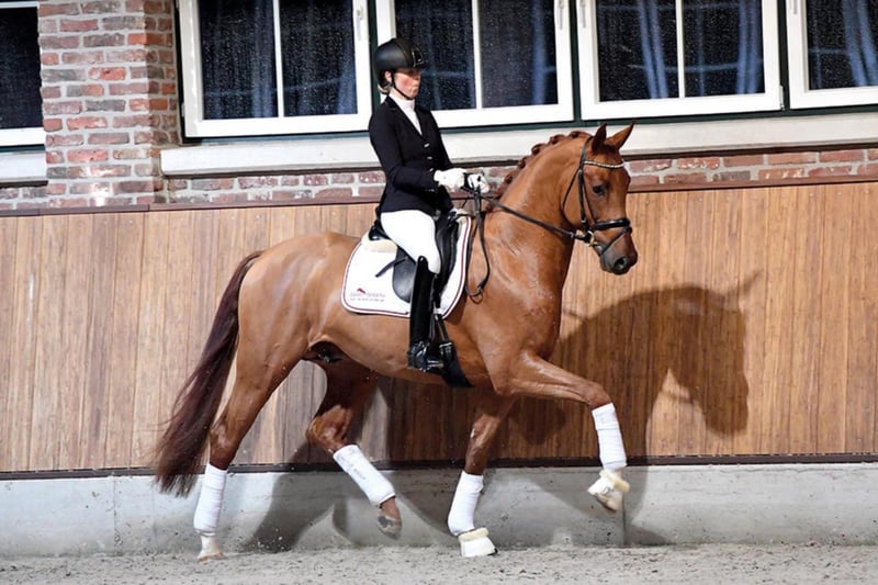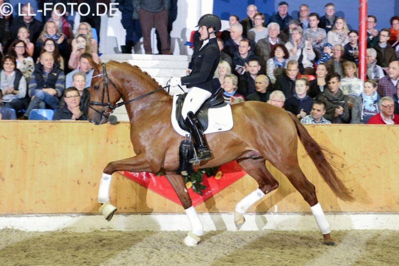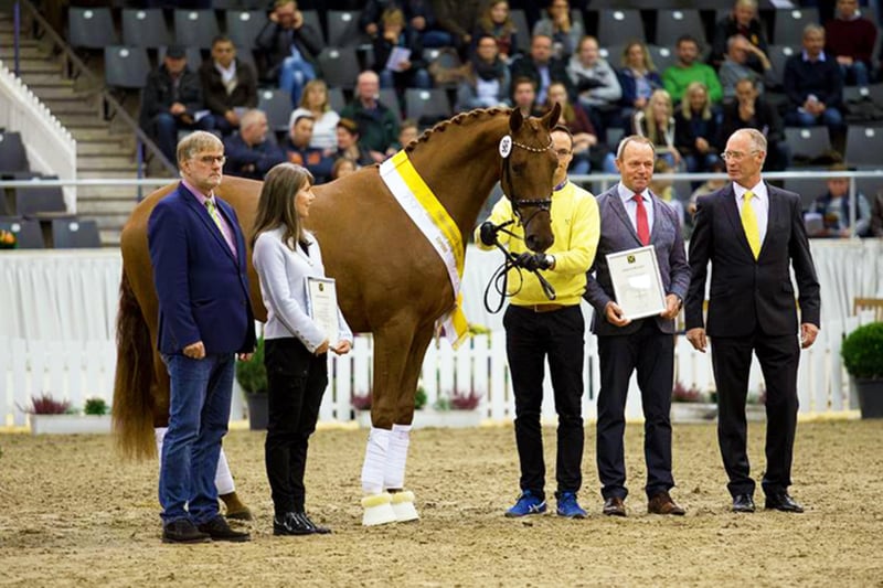 Vivaldos was named premium stallion at the Hannoveraner Körung 2018. He convinced Körkommission and the trade public from day one with his elastic movements, his outstanding mechanics and his present charisma. Together with his three equally good basic walks, he was the topic of discussion at the Körtage. Vivaldos is very typical, standing in a middle frame and already very well balanced. In his daily work, he is always motivated and willing to learn. The Hanoverian breeding manager and managing director Dr. Werner Schade said at the announcement of the Körurteile: "An ideal body division in cut-off, very loose, elastic movements, he celebrated it here again today." Descent Father Vivaldi is considered the Dutch foal maker and top stallion in general. He was the reserve winner of his stallion performance test and won the Pavo Cup for five-year-old dressage horses under the saddle of Dutch champion rider Hans Peter Minderhoud in 2007. In the following years he collected victories and placings in the KNHS/KWPN stallion series and received several top marks for his trot 10.0. Internationally he was successful in his active career until PSG/Intermediaire. The mother, St.Pr.St. Doris Day, impressed the experts as a three-year-old. Already during her mare performance test she convinced the jury. In 2010 she became the winner mare of the Herwart-von-der-Decken-Schau and Friedrich Jahncke-Schau, Hannoveraner Championesse and finally Bundeschampionesse in Warendorf. She brought the Han.Pr.Anw. Miss of Ampere (HvdDS 2014 1a) and Miss Inez also of Ampere (HvdDS 2017 1b award) as well as the licensed stallion Alphaville von Ampére (Landschäler Warendorf). Mother father Desperados FRH completed his 30-day test in Schlieckau with top marks and was a premium stallion of his körung. He was the Hannover champion in 2004 and won double bronze at the Bundeschampionaten in Warendorf in 2004 and 2005. Under the saddle of Kristina Bröring-Sprehe he matured into one of the most successful German dressage horses of recent years. He won and placed in numerous Grand Prix trials. He won team gold and individual bronze at the 2016 Summer Olympics in Rio de Janeiro. In 2016, he was also the undisputed number 1 in the WBFSH world rankings dressage. Several highly successful dressage horses originate from the mother trunk of the scented fairy. The family's S-successful dressage horses include Bon Jovi 49 from Brentano II, Sir Salvatore 2 from Sir Donnerhall I, So What from Sir Donnerhall, Buddy Holly 6 from Brentano II and highlight of Hill Hawk xx. Tirol von Polydor is successful in class S jumping competitions. In addition, licensed stallions belong to this tribe, e.g. Alphaville (half-brother of this Vivaldi-Young Stallion), Quidamo, San Sambaro, Sir Salvatore 2 and Weltmeyer II.
