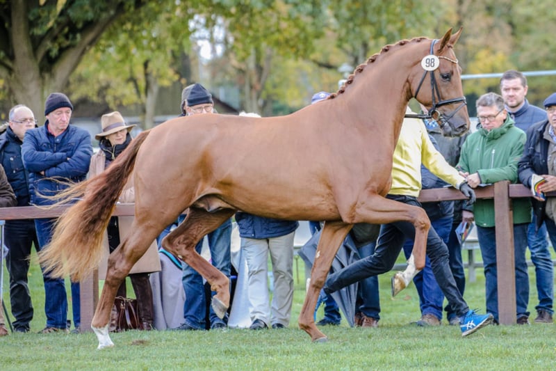 Vivaldos - Ein Fohlenmacher wie er im Buche steht. Umjubelter Prämienhengst der Hannoveraner Körung und 2020 Hauptprämiensieger des Oldenburger Pferdezuchtverbandes aufgrund seiner Eigenleistung und der herausragenden Nachzucht, die die Erwartungen noch übertraf. Er bekam die höchste Fohlenbewertung des Verbandes. Ganz selbstverständlich zeigen seine Fohlen enorm viel Mechanik, Takt, Bergauftendenz und Tragkraft. Sie sind durchweg sehr korrekt im Fundament, extrem typvoll mit viel Aufsatz und Ausstrahlung. Der Schritt ist so, wie man ihn sich wünscht. Zahlreiche Nachkommen wurden Elitefohlen und Preisspitzen auf Auktionen. Vivaldos wurde anlässlich der Hannoveraner Körung 2018 zum Prämienhengst gekürt. Er überzeugte Körkommission und Fachpublikum vom ersten Tag an mit seinen elastischen Bewegungen, seiner überragenden Mechanik und seiner präsenten Ausstrahlung. Zusammen mit seinen drei gleichermaßen sehr guten Grundgangarten war er Gesprächsthema der Körtage. Vivaldos ist sehr typvoll, im mittleren Rahmen stehend und stets motiviert und lernwillig. Der Hannoveraner Zuchtleiter und Geschäftsführer Dr. Werner Schade sagte bei der Verkündung der Körurteile: "Eine ideale Körperaufteilung im Zuschnitt, sehr lockere, elastische Bewegungen, er hat es hier heute nochmal regelrecht zelebriert". 2019 absolvierte Vivaldos erfolgreich seinen 14-Tage-Test in Adelheidsdorf. Nach einem sehr guten Zuchtjahr folgte 2020 der erste Turniereinsatz für Vivaldos. Er überzeugte auf Anhieb und gewann die Reitpferdeprüfung in Höven mit der Endnote 8,6. Kurz darauf platzierte er sich im Hannoveraner Championat an 4. und 5. Stelle und wurde für das Bundeschampionat der vierjährigen Reithengste nominiert. Bei seinem ersten Turnier 2021 qualifizierte sich Vivaldos direkt für das Bundeschampionat der 5-jährigen Dressurpferde. Abstammung Vater Vivaldi gilt als der niederländische Fohlenmacher und Spitzenhengst überhaupt. Er war Reservesieger seiner Hengstleistungsprüfung und gewann im Jahr 2007 den Pavo Cup für fünfjährige Dressurpferde unter dem Sattel vom niederländischen Championatsreiter Hans Peter Minderhoud. In den Folgejahren sammelte er Siege und Platzierungen in der KNHS/KWPN-Hengstserie und bekam für seinen Trab mehrfach die Höchstnote 10,0. International war er in seiner aktiven Karriere bis PSG/Intermediaire erfolgreich. Die Mutter, St.Pr.St. Doris Day beeindruckte als dreijährige die Fachwelt. Bereits während ihrer Stutenleistungsprüfung überzeugte sie die Jury. 2010 wurde sie Siegerstute der Herwart-von-der-Decken-Schau und Friedrich Jahncke-Schau, Hannoveraner Championesse und schließlich Bundeschampionesse in Warendorf. Sie brachte die Hannoveraner Prämienstuten Fräulein von Ampère (HvdDS 2014 1a) und Fräulein Inez ebenfalls von Ampère (HvdDS 2017 1b prämiert) sowie den gekörten Hengst Alphaville von Ampère (Landbeschäler Warendorf). Muttervater Desperados FRH absolvierte seinen 30-Tage-Test in Schlieckau mit Höchstnoten und war Prämienhengst seiner Körung. Er war Hannoveraner Champion 2004 und gewann Doppelbronze bei den Bundeschampionaten in Warendorf 2004 und 2005. Unter dem Sattel von Kristina Bröring-Sprehe reifte er zu einem der erfolgreichsten deutschen Dressurpferde der letzten Jahre. Er siegte und platzierte sich in zahlreichen Grand Prix-Prüfungen. 2016 holte er bei den Olympischen Spielen in Rio de Janeiro Mannschafts-Gold und Einzel-Bronze. Außerdem war er 2016 die unangefochtene Nummer 1 der WBFSH-Weltrangliste Dressur. Dem Mutterstamm der Duftelfe entspringen mehrere hocherfolgreiche Dressurpferde. Zu den S-erfolgreichen Dressurpferden der Familie gehören zum Beispiel Bon Jovi 49 von Brentano II, Sir Salvatore 2 von Sir Donnerhall I, So What von Sir Donnerhall, Buddy Holly 6 von Brentano II sowie Highlight von Hill Hawk xx. Tirol von Polydor ist in Springprüfungen der Klasse S erfolgreich. Darüber hinaus gehören gekörte Hengste diesem Stamm an, bspw. Alphaville (Halbbruder von Vivaldos), Quidamo, San Sambaro, Sir Salvatore 2 und Weltmeyer II. Nachkommen Der Hannoveraner Prämienhengst Vivaldos wurde 2020 wegen seines besonders guten ersten Fohlenjahrganges und seiner Eigenleistung zum Hauptprämiensieger des Oldenburger Pferdezuchtverbandes gekürt. Er beeindruckte Züchter auf der ganzen Welt mit seinem ersten Fohlen. Die Nachkommen zeigen enorm viel Mechanik, sehr viel Bergauftendenz und Tragkraft. Die Fohlen sind durchweg sehr korrekt im Fundament, sehr typvoll mit viel Aufsatz und Ausstrahlung. Der Schritt ist so, wie man ihn sich wünscht, raumgreifend und deutlich übertretend. Der Trab elastisch und schwungvoll, mit viel Knieaktion und Schub aus der Hinterhand. 2025 stellt Vivaldos mit dem vierjährigen gekörten Vanity Fair den Sieger im AES-Sporttest. 2023 stellte Vivaldos den Reservesiegerhengst der Körung in Redefin, der für den Spitzenpreis von 127.000€ versteigert wurde. Der Rapphengst namens Vuitton stammt aus dem Stutenstamm der Pille, aus dem schon viele erfolgreiche Sportpferde entsprungen sind. Im fallenden Mutterstamm finden sich die Vererber Dancier und Rascalino. Vivaldinio von Vivaldos - Finest wurde in Neustadt-Dosse gekört und avancierte 2023 zum Vize-DSP-Reitpferdechampion. Bei der Hannoveraner Körung 2022 wurde Val D'Aran von Vivaldos aus einer Weltmeyer Mutter gekört. TH Vivaldo von Vivaldos x Revolution x Ferro aus der Zucht von Jens Thorhauge wurde Hengstfohlen des Jahres 2023 in Dänemark und anschließend für den Spitzenpreis von 44.000 Euro über die Auktion in Vilhelmsborg verkauft. Vincento von Vivaldos x Belissimo gewinnt mit 9,33 den Freilaufcup der PZG Holledau. Richterin Patricia Bottani, Olympia-Reiterin aus Langerringen, bestätigte: „Wir sahen hier einen Hengst mit überragenden Grundgangarten: immer elastisch, immer unter dem Schwerpunkt und mit sehr viel Dynamik ausgestattet. Das ist ganz klar ein Pferd für den großen Sport.“ Zahlreiche Stuten aus Vivaldos' erstem Fohl