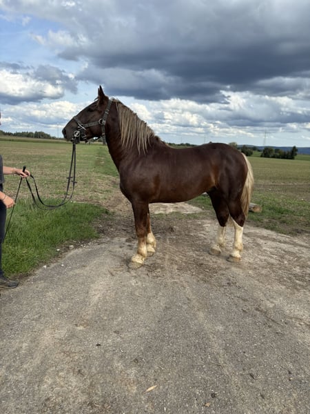 Wegen Bestandsminderung suche ich für meinen Süddeutschen Kaltblut Wallach „Muck“ ein neues Zuhause. Muck ist 2,5 Jahre alt, und wurde im Oktober mit 1,65 cm gemessen. Er ist dem Alter entsprechend longiert, leicht gefahren und kennt den Sattel schon. Vancouver x Velox PSSM frei Bei Interesse gerne melden.