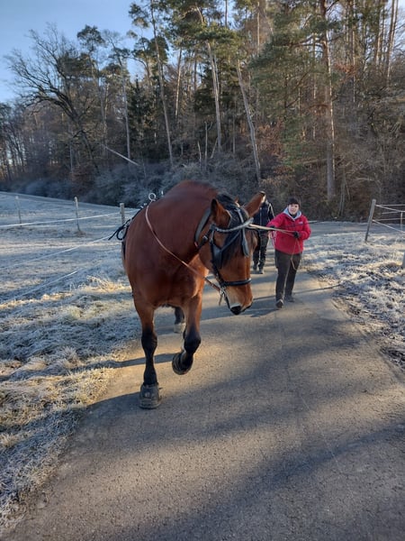 Es gibt Pferde, die fordern uns heraus, damit wir über uns hinauswachsen. Unsere 12-jährige Süddeutsche Kaltblutstute „Nandl“ ist genau so ein Rohdiamant mit Ecken und Kanten. Sie ist eine imposante Braune (ca. 162 cm), die eine klare Führung sucht und eine Aufgabe braucht. Im Herzen eine Arbeiterin Was Nandl so besonders macht: Sobald es an die Arbeit geht, zeigt sie ihr bestes Gesicht. Sie ist extrem zuverlässig und möchte ihrem Menschen gefallen. Ob an der Longe oder bei der Bodenarbeit – Nandl ist mit Eifer dabei und arbeitet aktiv mit. Sie sucht jemanden, der diese Arbeitsfreude zu schätzen weiß und sie geistig wie körperlich fördert. Im Gelände zeigt sie sich aktuell noch reizbar und temperamentvoll. Hier braucht sie einen Reiter, der ihr mit absoluter Gelassenheit und Souveränität den Weg weist und ihr die nötige Sicherheit gibt. Ein Charakterkopf mit Anspruch Im täglichen Umgang ist Nandl klar dominant. Sie ist keine Stute für unsichere Hände, Anfänger oder Wiedereinsteiger. Sie braucht einen „Fels in der Brandung“ – jemanden, der konsequent, aber immer fair und ruhig bleibt. Wer ihre Sprache spricht, bekommt eine ehrliche Partnerin, die für ihren Menschen durchs Feuer geht. Gemeinsam zur Genesung Nandl bringt ein aktuelles gesundheitliches Thema mit: Ihre Hufprobleme müssen noch vollständig herauswachsen. Das erfordert Geduld, Zeit und ein fachkundiges Hufmanagement. Wir suchen einen Menschen, der diesen Weg nicht als Belastung, sondern als Investition in eine gemeinsame Zukunft sieht. Sie wird ausdrücklich mit diesem Befund abgegeben. Das passende Zuhause: • Eckdaten: Süddeutsches Kaltblut, Stute, 12 Jahre, ca. 162 cm. • Stärken: Arbeitswillig, möchte gefallen, kennt Longe & Bodenarbeit. • Herausforderung: Dominant im Umgang, reizbar im Gelände, Hufbefund. • Wunsch: Nur an erfahrene, souveräne Pferdehalter. Platz vor Preis: Uns liegt Nandls Zukunft am Herzen. Wir suchen den Bestplatz, an dem sie die Zeit und die Führung bekommt, die sie verdient. Verkauf von privat (keine Garantie/Rücknahme). Wenn du eine echte Aufgabe suchst und bereit bist, mit Nandl zusammenzuwachsen, freuen wir uns auf deine Nachricht!