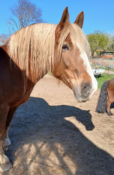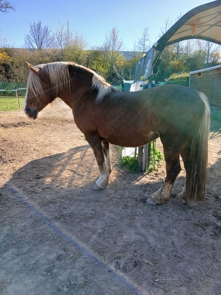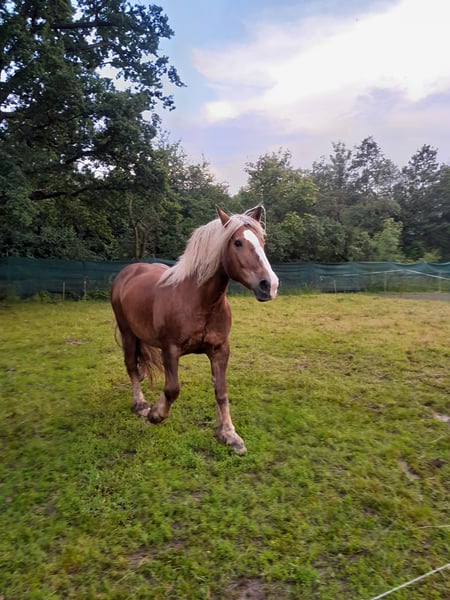 The mare (Edelweißbrand) is being offered for sale due to a reduction in herd size for health reasons on my part. Anne is 16.1 hh, a dark chestnut born in 2010. She has had limited leisure riding experience, as she was primarily used as a driving horse, so with some training, this should not be an issue. She is double-driven, but has been standing still recently due to my illness. She is very friendly, affectionate, healthy, allergy-free, does not bite or kick, and easily accepts all hoof handling. She has no problem with shoeing and loads calmly; there have been no issues with her so far. In recent months, she has not been worked regularly and will likely need some time to settle in. This is not an emergency sale, but it is better for the horse than remaining unused here. Serious inquiries are welcome.