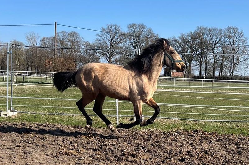 Hallo du! Ja genau, DU mit den Möhren in der Tasche 👀🥕 Ich bin ein junger Andalusier-Wallach (bald stolze 3 Jahre alt – ich wachse quasi noch in meine Coolness rein 😎). Endmaß wird irgendwo zwischen 1,58 und 1,60 liegen – also die perfekte Mischung aus handlich und „Wow, der hat aber Ausstrahlung!“. ✨ Besondere Merkmale: Ich trage ein wunderschönes Buckskin-Kleid – quasi die goldene Mitte zwischen „edel“ und „Hingucker“. Wenn die Sonne draufscheint, sehe ich ein bisschen aus wie ein Instagram-Filter in echt 🌞 🐴 Charakter: Ich bin eher der Typ „lieber nett als Chef“. In der Herde gehöre ich nicht zu den Angebern – rangniedrig, höflich und konfliktvermeidend. Drama überlasse ich den anderen 😉 🧠 Ausbildung & Zukunft: Ich bin noch etwas spät dran in meiner Entwicklung – aber hey, ich werde ja auch erst 3 im Sommer! Dafür bekommst du ein Pferd, das dir lange gesund und motiviert erhalten bleibt 💪 Ich bringe alles mit, um ein echter Allrounder zu werden: 🌵 Western 🌳 entspanntes Ausreiten 🤠 Working Equitation 🎠 Freizeitpartner fürs Herz Und ja… Dressur und kleine Sprünge gehen natürlich auch – ich bin schließlich vielseitig interessiert 😇 🌦️ Alltagstauglichkeit: Ich bin barfuß unterwegs (fühle mich auch so ziemlich wohl damit) und kenne das echte Leben: ❄️ kalte Winter 🌧️ Regen 🔥 Hitze → ich bin also kein Schönwetter-Influencer 😉 👨👩👧 Familie inklusive: Meine Halbschwester und mein Halbbruder wohnen übrigens auch hier im Stall – gute Gene sind also kein Zufall 😉 und Du kannst uns alle Kennenlernen. 💌 Ich suche: Einen Menschen mit Herz, Humor und etwas Geduld, der Lust hat, gemeinsam mit mir zu wachsen. Ich verspreche: Ich gebe mir Mühe – und werde ein Partner fürs Leben ❤️ 👉 Wenn du also keinen fertigen Professor suchst, sondern einen jungen Charakterkopf mit goldener Farbe und großem Potenzial… dann schreib mir! (Möhren sind kein Muss… erhöhen aber die Erfolgschancen erheblich 🥕😉)