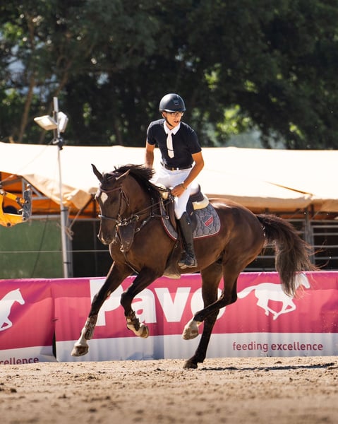 Caballo de salto, perfecto para correr 1'30 y ha corrido algún 1'35. Con mucho corazón, ideal para subir de prueba y coger confianza. Tiene 12 años, y tenemos placas de todo el caballo, y nunca ha dado ningún problema.