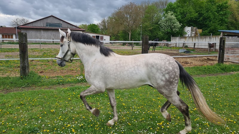 Sehr imposanter Spanier Wallach der durch Rittigkeit und Charakter besicht. Er hat einen angenehmen Bewegungsablauf mit toller Einstellung. Im Umgang unkopliziert. Kennt Halle, Platz und Gelände. Ein toller Wallach für den ambitionierten Freizeitreiter. Dressur und Geländeritte.