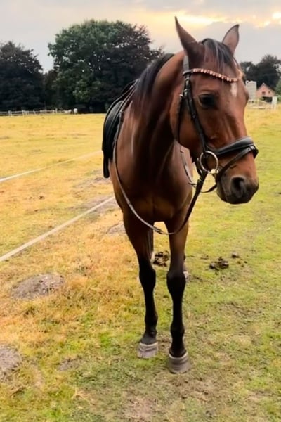 Beautiful Gelding for Sale We are looking for a new home for our talented gelding! Features: - Breed: Spanish origin - Gender: Gelding - Year of Birth: 2018 - Color: Bay - Height: 15.5 hh - Suitability: Dressage, leisure riding This charming gelding impresses not only with his attractive appearance but also with his excellent movement and friendly personality. He has been gently trained and shows great potential in dressage. He has a very sweet, relaxed, and calm character. He is well-handled from the ground, including anti-spook training, lunging, and walking in hand. He also rides alone in the field without any issues. He is suitable for both experienced riders and ambitious beginners who wish to continue working with him. He is confident in walk, trot, and canter and has been trained with care. Groundwork and anti-spook training have been part of his education. He can be ridden alone in the terrain. If desired, he can be transported at an additional cost. Please contact us if you are interested or for further information. We look forward to hearing from you!