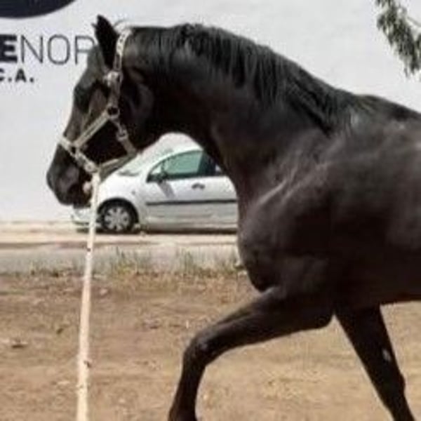 Carácter extraordinario y muy buenos movimientos. Te resultará muyfácil montarlo, aunque no tengas mucho nivel en equitación, porque su base de doma está muy bien hecha y el caballo es muy obediente. Disfrutarás mucho con él, sacándolo al galope desde el paso, lo hace muy bien. Además, muy acostumbrado a salir por el campo, por el pueblo y a ir a romerías, también ha estado en El Rocío, así que tendrás un caballo a prueba de bombas, dispuesto a acompañarte en cualquier aventura. Podrás montarlo con la embocadura que más te guste. Está acostumbrado al bocado, pero ahora han empezado a montarlo con filete. Fíjate en el video, verás que se encuentra un poco perdido porque era el primer día que se lo pusieron Ahora ya va mejor con filete. Buenos orígenes CDE.