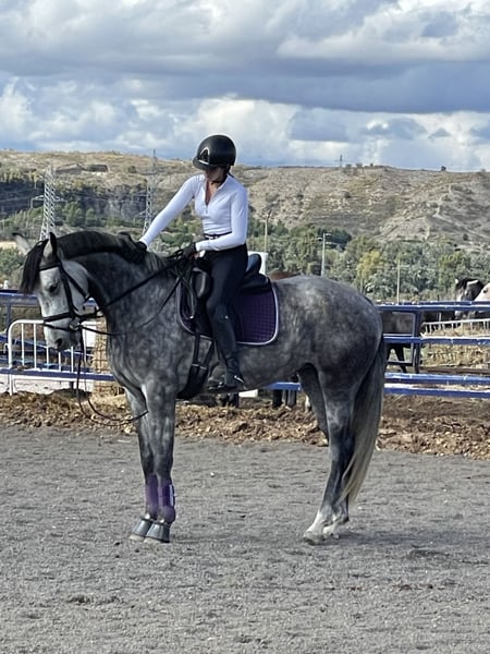 CDE mare, registered in ANCADES. Born in 2020. Training level: level 3 and starting to change leads. Very good lateral movements: shoulder-in, leg yields... Very good character, super affectionate, and great ground manners. No problem loading and unloading from a truck. Suitable for any rider with some experience. For videos, please contact via WhatsApp. Only serious inquiries. Thank you.