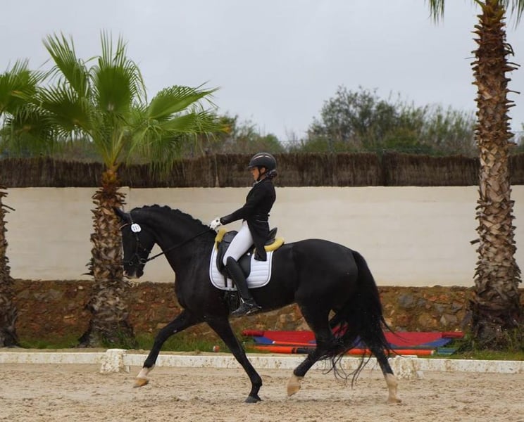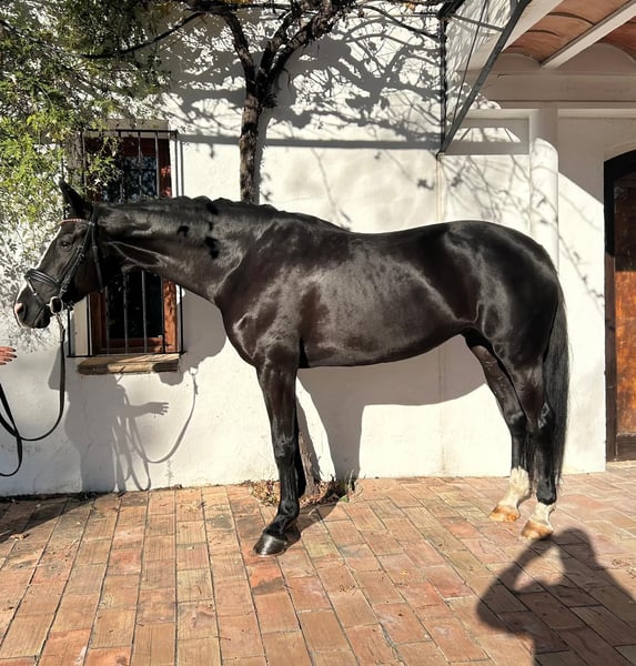 For sale: A magnificent 7-year-old sport mare with top dressage bloodlines and extensive competition experience. She stands at 16.1 hh. Ideal for juniors or adults looking to compete in classical or San Jorge events. She goes well with a snaffle bit or with a double bridle. She is very affectionate and well-behaved, but not suitable for a child due to her age and size. Serious buyers only, those who will give her a good home. Please inquire only if you are truly seeking a horse with these characteristics.