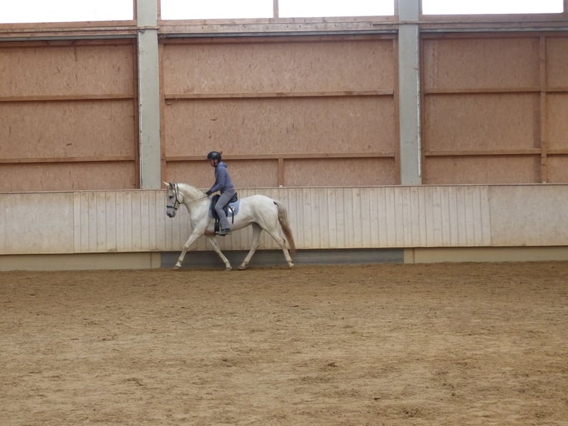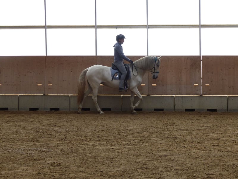 Verkauf PRE Stute ohne Abstammungsnachweis – Rappschimmel, Geburtsjahr 2017 Diese elegante PRE-Stute begeistert durch ihre ansprechende Erscheinung und ihr angenehmes Wesen. Mit einem Stockmaß von 155 cm und bereits Erfahrungen auf verschiedenen Veranstaltungen, ist Sie die perfekte Partnerin für den gehobenen Freizeitreiter. Wir können Sie uns ebenfalls gut in der Dressur, wie dem Working Equitation vorstellen. Sie ist im Jahr 2017 geboren und bringt somit noch viel Potenzial für die weitere Ausbildung mit. Sie hat ein gutes Go und ist rassentypisch sehr aufgeweckt und somit zum momentanen Ausbildungsstand kein Anfängerpferd. Bei Interesse und für weitere Informationen stehen wir gerne zur Verfügung, bitte rufen Sie uns an oder schreiben Sie uns eine Nachricht per Whats App und vereinbaren Sie ein unverbindliches Probereiten.
