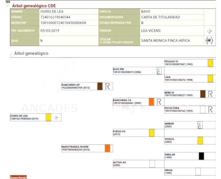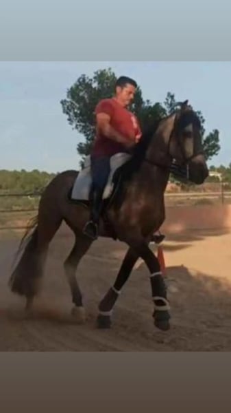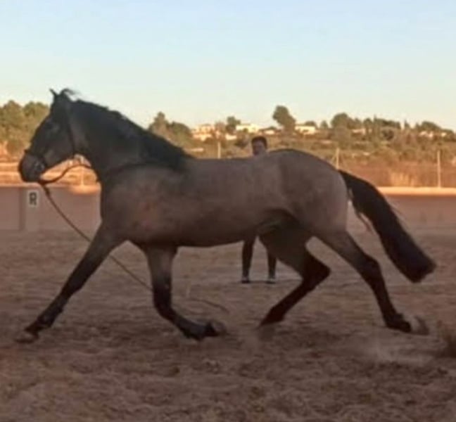 Caballo CDE con el Hierro de Lea VICENS. Unico Propietario desde Potro. Capa Exclusiva Bayo Oro. Edad 6 años y Medio. Talla 1,63 todavía en Crecimiento y Desarrollo. Dado de alta como Reproductor pero No a Cubierto. Carta CDE e Inscrito en ANCADES. Nieto del Famoso FUEGO FG Lusitano Bayo Faivre y Nieto del Famoso DIVO PM Padre RANCHERO AP PRE Hierro Peralta. Madre Maestranza LUSITANA Hierro Faivre. Montado, paso, trote, galope y realizando diferentes ejercicios de Doma Clásica, Cesiones, Apoyos, Transiciones y Posada. Iniciado en Cambios y Paso Español. Noble Noble lo montan niñas y adultos en Pista realizando diferentes ejercicios. Saliendo por la calle y campo de Paseos y Rutas solo o en Compañía, ideal para juveniles y Aficionados a la EQUITACIÓN. Se acepta Cualquier Revisión veterinaria y Pruebas PRE-Compra. Revisión Veterinaria, Documentación, boca hecha, Vacunas y desparasitado Ok. Se Acepta Periodo de PRUEBAS en la HÍPICA. Se Entrega Factura.
